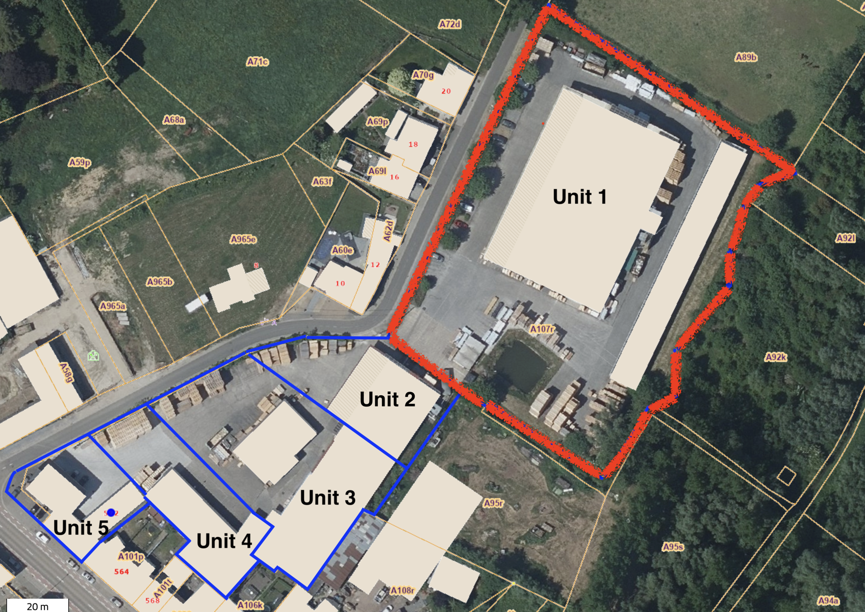 Deze functionele bedrijfshal maakt deel uit van een ruim industrieel terrein van 1,7 hectare, gunstig gelegen op slechts 7,5 km van het centrum van Sint-Truiden en eveneens 7,5 km van de snelweg E40.