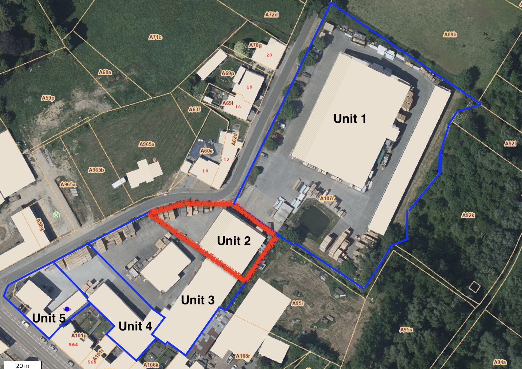 Deze functionele bedrijfshal maakt deel uit van een ruim industrieel terrein van 1,7 hectare, gunstig gelegen op slechts 7,5 km van het centrum van Sint-Truiden en eveneens 7,5 km van de snelweg E40.