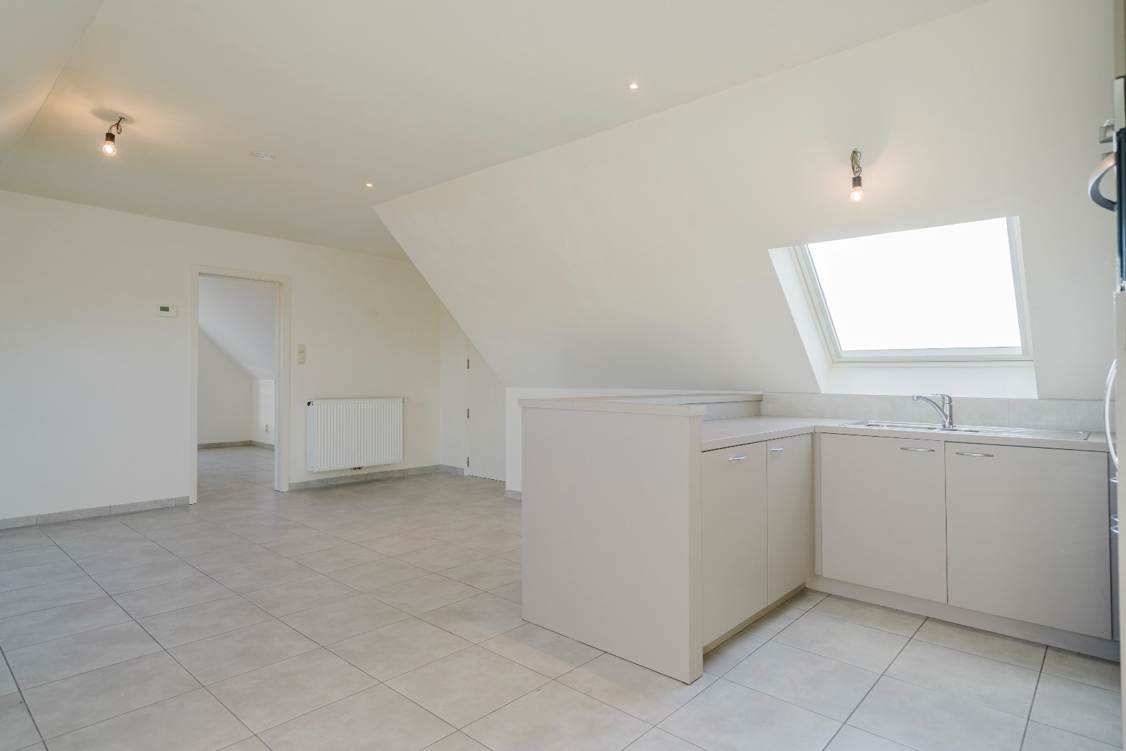 Hedendaags en comfortabel dakappartement met alle troeven voor aangenaam wonen. De lift brengt u rechtstreeks tot in het appartement, wat meteen zorgt voor comfort en privacy. U komt binnen in een lichtrijke leefruimte met een open keuken, volledig uitgerust met alle nodige toestellen.