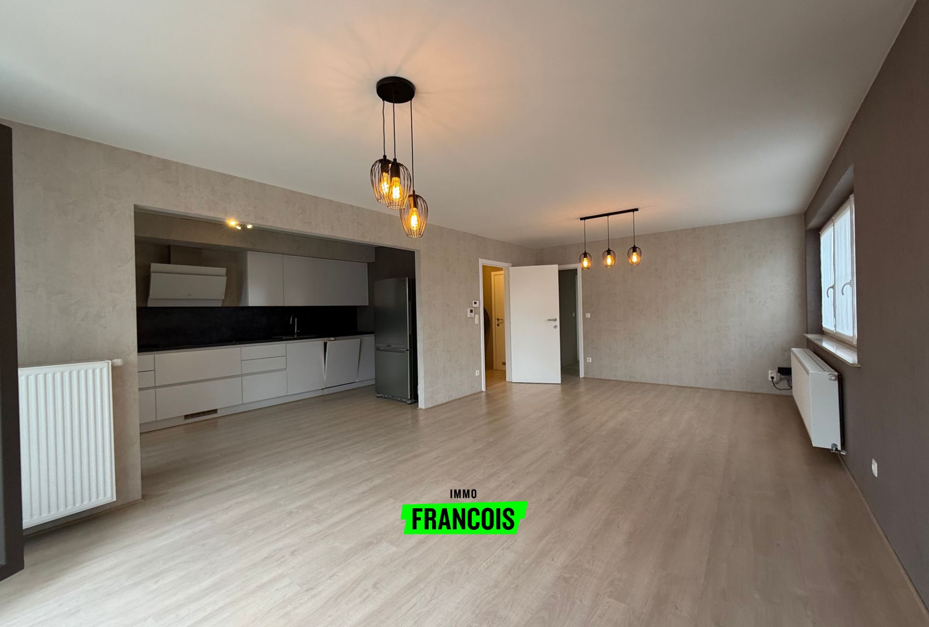 De lichtrijke en ruime woonkamer sluit aan op de open keuken, die volledig is ingericht met de nodige toestellen. Verder beschikt het appartement over een inkomhal, twee ruime slaapkamers, een badkamer met douche en toilet, een berging en een extra ruimte die perfect kan dienen als bureau of dressing.