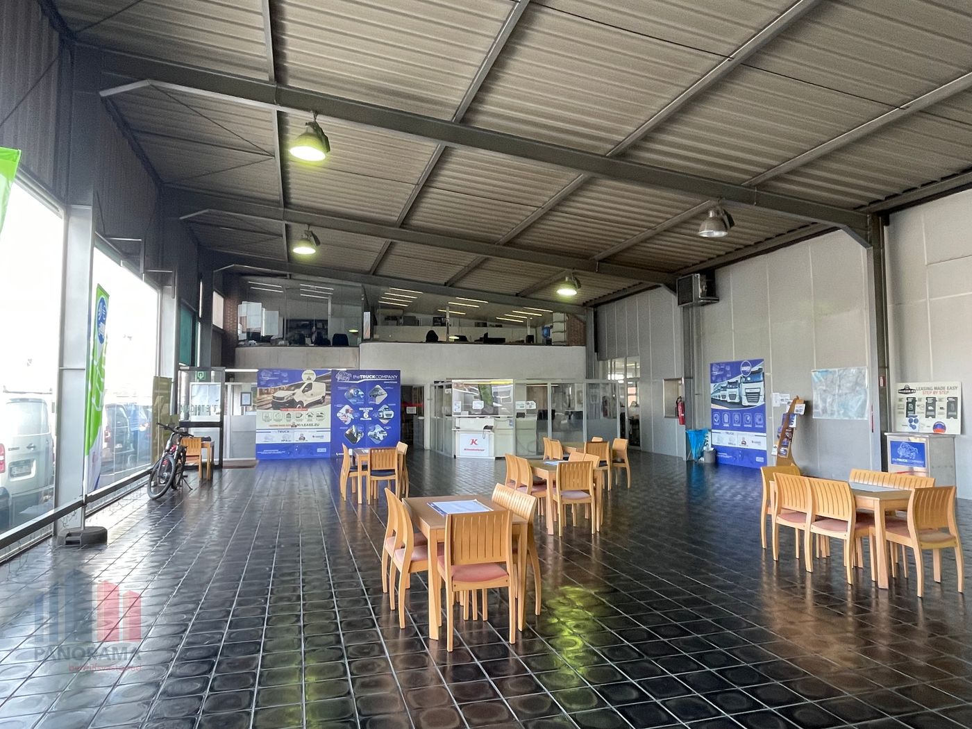 De handelsruimte springt meteen in het oog dankzij de brede glasgevel aan de straatkant, wat zorgt voor een sterke visuele aanwezigheid en continue visibiliteit naar het drukke verkeer.