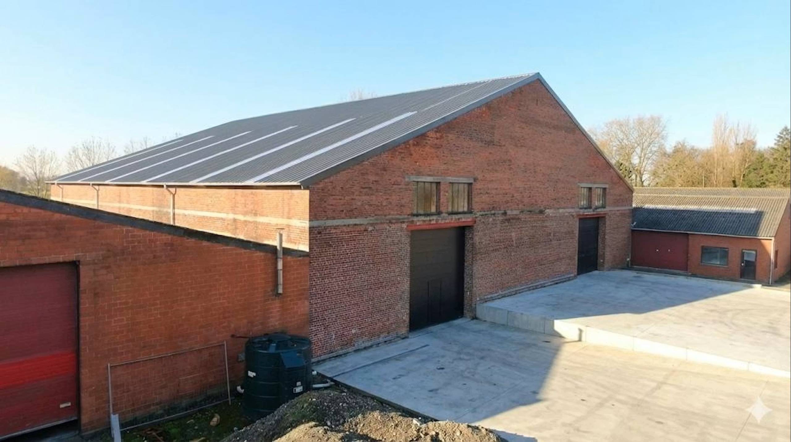 De loods is voorzien van een volledig nieuw geïsoleerd dak en polybetonvloer.
