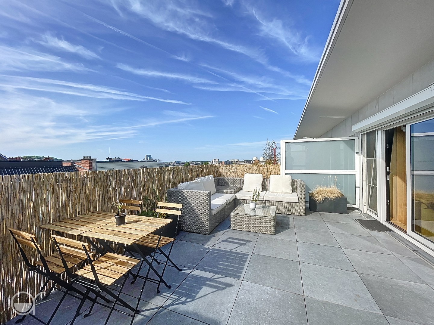 Gemeubeld dakappartement met terras met uitzicht op De Vooruit, Boekentoren en de Drie Torens van Gent.