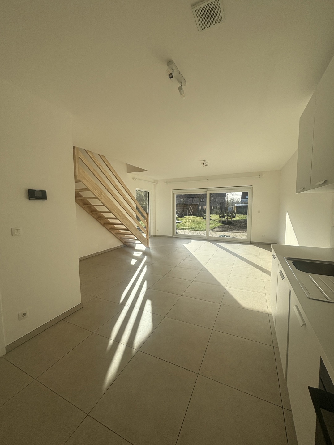 De woning beschikt over een ruime leefruimte met grote raampartijen die zorgen voor veel natuurlijk licht. Aansluitend bevindt zich een volledig geïnstalleerde keuken met moderne toestellen, waaronder een vaatwasser en een inductiekookplaat.
