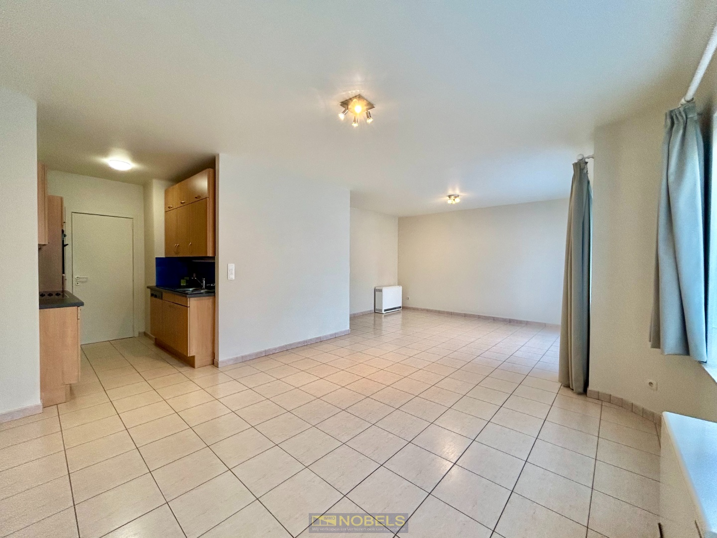 De indeling gaat als volgt: inkomhal, RUIME WOONKAMER met open keuken, bergruimte, afzonderlijk toilet, 2 VOLWAARDIGE SLAAPKAMERS en badkamer.