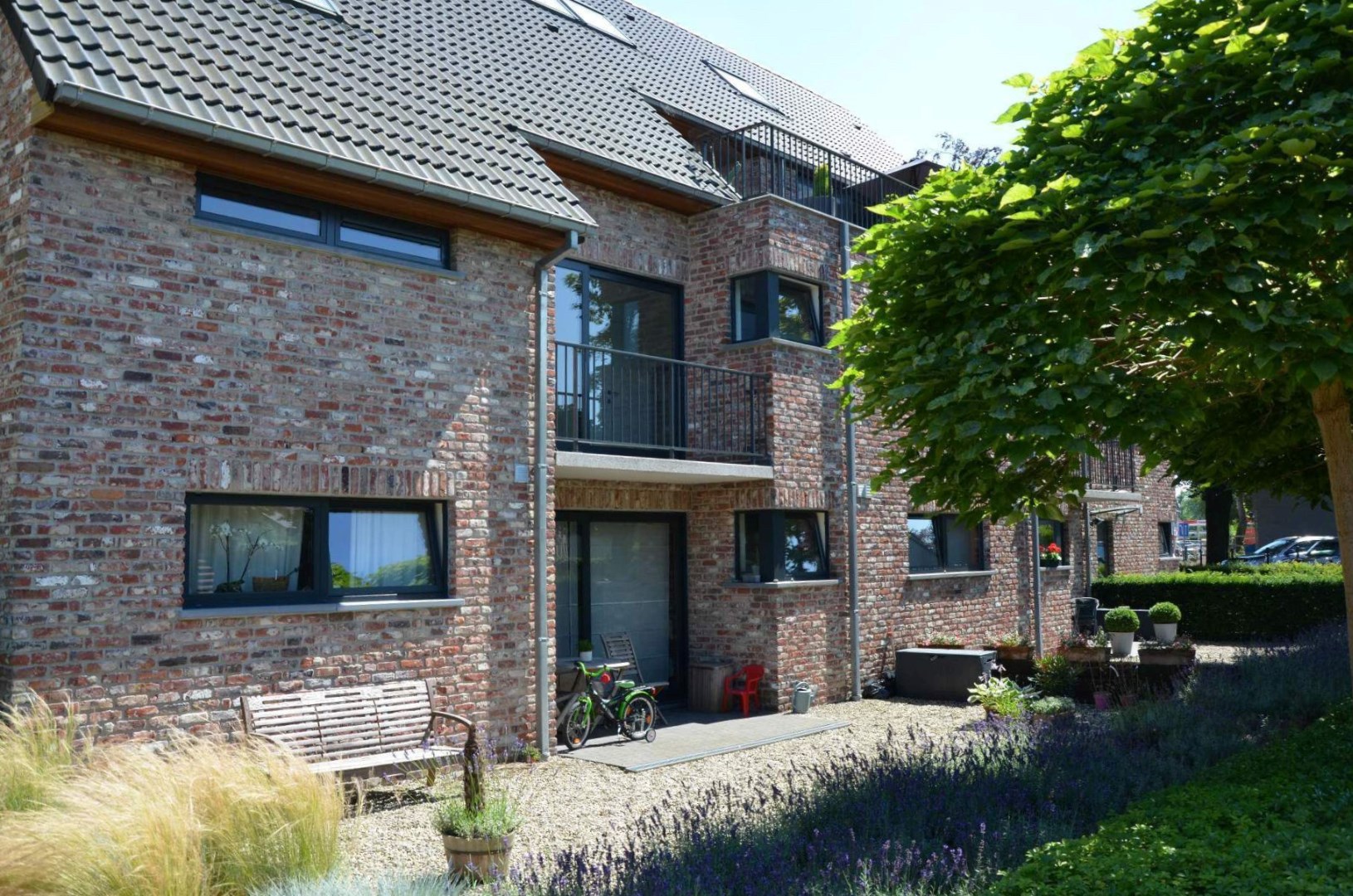 Appartement op de 1ste verdieping met lift (61 m²) bestaande uit hal, living, toilet, ingerichte open keuken met toestellen (frigo, diepvries, oven), 1 slaapkamer, badkamer met ligbad, terras en een gemeenschappelijke tuin. Verder is er ook nog een overdekte fietsenstalling aanwezig alsook een autostaanplaats.