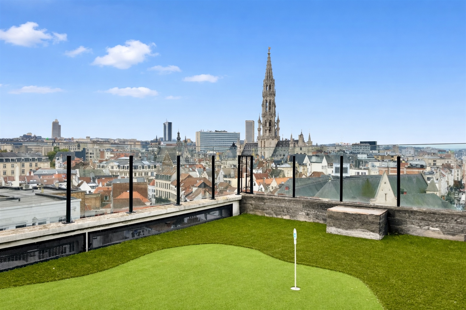 Super exclusieve, gemeubelde en smaakvol ingerichte penthouse, met golf putting green op het imposante terras van 130 m², ideaal gelegen op een AAA-locatie! Dit uitzonderlijke eigendom, opgeleverd in 2014, met een netto bebouwde oppervlakte van 225 m² (inclusief terras), bevindt zich op de zevende verdieping in de perfect onderhouden en trendy residentie “Brussels Square” ingedeeld als volgt: een inkomhal met gastentoilet en inbouw vestiairekast, een majestueuze en gezellige woonkamer met een totaal ingerichte Amerikaanse keuken die toegang geeft tot het riante zonneterras, een nachthal, twee volwaardige slaapkamers waarvan één met private dressing en twee badkamers met een tweede toilet. Uitzonderlijke ligging: Pal gelegen in het hartje van onze Europese hoofdstad, op enkele stappen van de Grote Markt, het Manhattan Center, de Nieuwstraat, de Dansaertwijk met zijn stijlvolle boetiekjes en nabij metro station Brouckère. Na een drukke werkdag herbronnen op de putting green met uniek zicht op de Brusselse skyline? Contacteer Frederik vrijblijvend voor meer informatie of een eerste bezoek: frederik@immo-time.be.