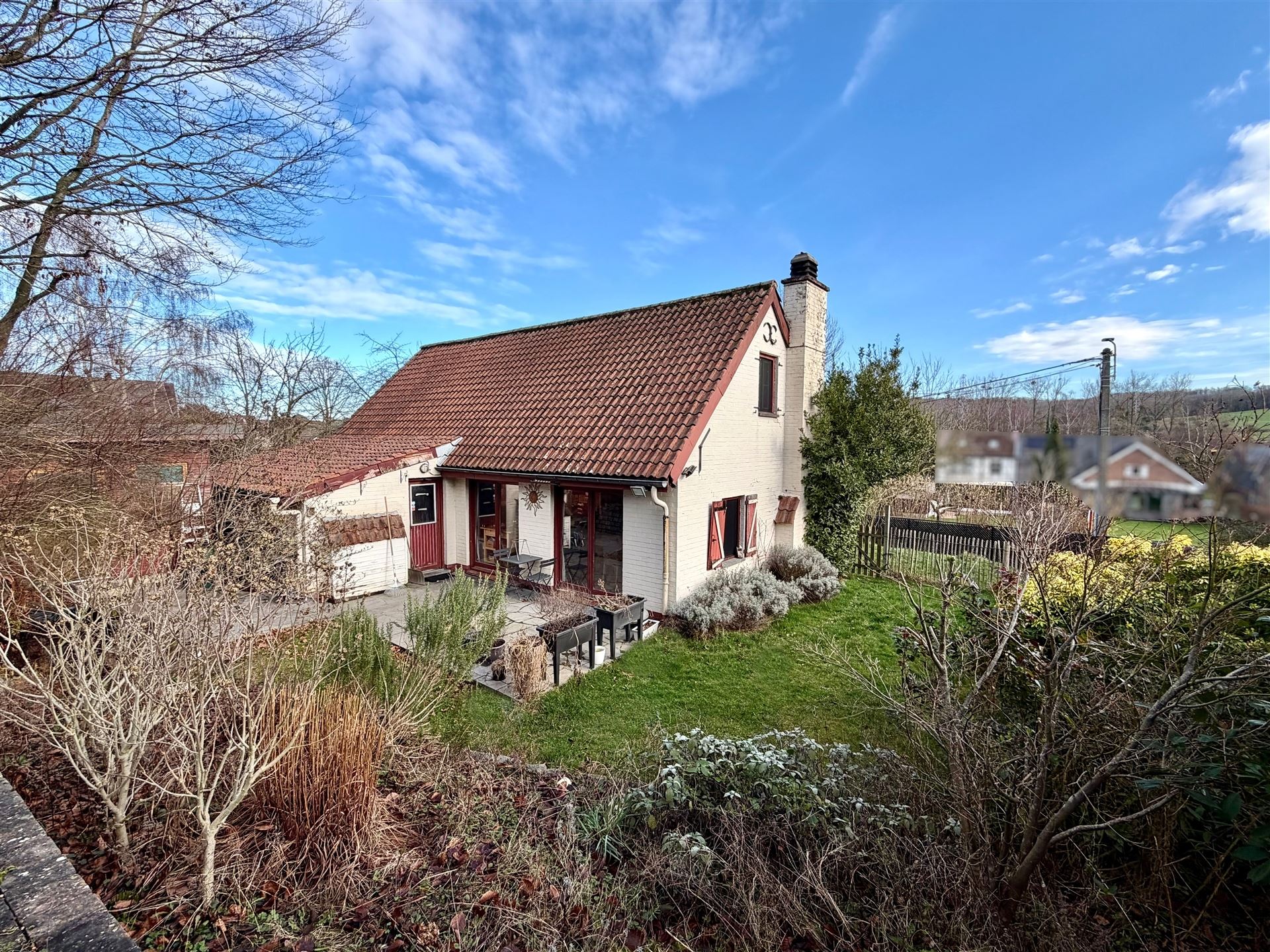 Oisquercq, dans une jolie rue sans issue idéalement située au calme et à la campagne et pourtant à seulement 10 minutes des axes vers Bruxelles, belle villa au coeur d'un terrain entièrement clôturé offrant 3 chambres dont une au rez de chaussée et 2 salle d'eau profitant de beaux volumes et de nombreuses possibilités y compris la possibilité d'exercer une activité professionnelle grâce à une annexe indépendante de 30 m². La maison se compose d'un hall d'entrée vers le chaleureux séjour sous parquet de 40 m2 équipé d'un poêle à bois et comprenant une jolie cuisine récente entièrement équipée. Toujours au rez de chaussée, hall de nuit vers la chambre de 15 m² et sa salle de bain de 8 m² équipée d'une douche, d'une baignoire et d'un meuble double vasques.Wc séparé. Grande buanderie au rez (anciennement garage). À l'étage, via le grand hall de nuit sous plancher stratifié avec ses rangements latéraux, 2 autres chambres de 14 et 12 m2 sous plancher stratifié. Salle de douche. Bâtiment annexe idéal pour un membre de la famille ou l'exercice d'une activité professionnelle avec ses 30 m² et chauffage par pompe à chaleur. Beau jardin fleuri et arboré de plus de 7 ares bien orienté (Sud) et sa magnifique terrasse en pierre bleue. Étang. Cabane de jardin et abri à bois. Grenier de rangement. Boiler thermodynamique. Pompes à chaleur dans le séjour et l'annexe.Vide technique. Raccordement aux égouts. Parking pouvant accueillir 3-4 voitures.Citerne d'eau de pluie. Jardin clôturé. PEB C. Faire offre à partir de 375 000 €. Infos et visites au 02/355.50.55.