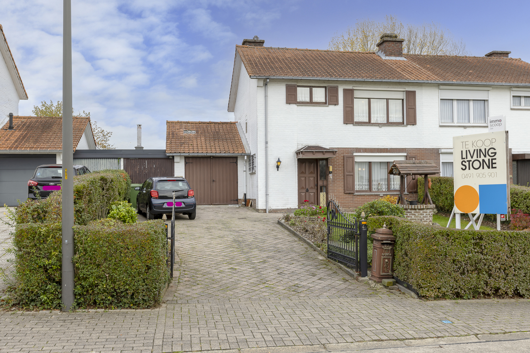 De woning beschikt verder over twee garages (elk voor één wagen) met aansluitende wasplaats. De oprit biedt bovendien voldoende parkeergelegenheid.