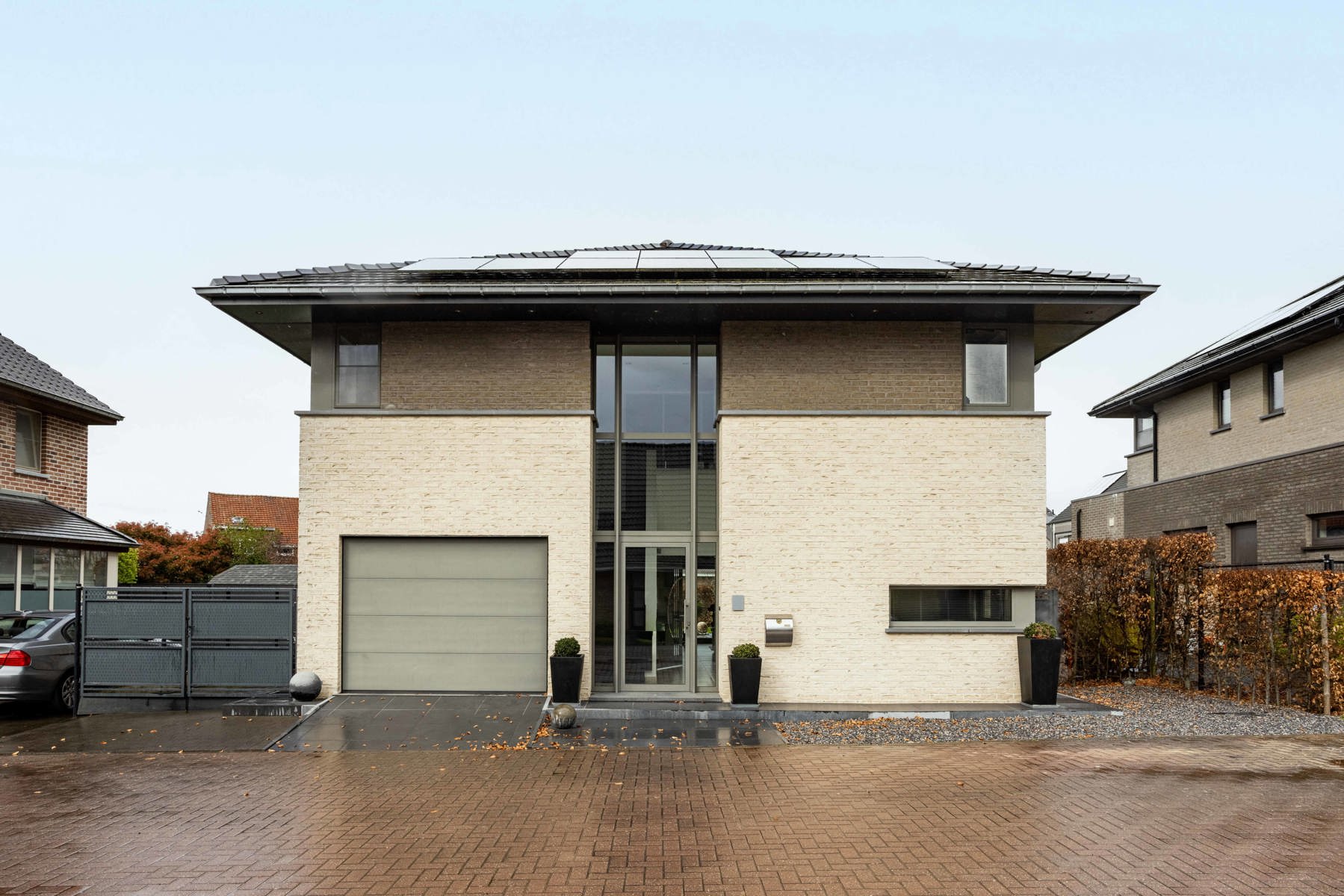 Op het gelijkvloers vind je een aangename leefruimte met een volledig uitgeruste keuken. Daarnaast is er een aparte bureauruimte die ook perfect kan dienen als vierde slaapkamer. Tot slot is er nog een inpandige garage met elektrische poort.