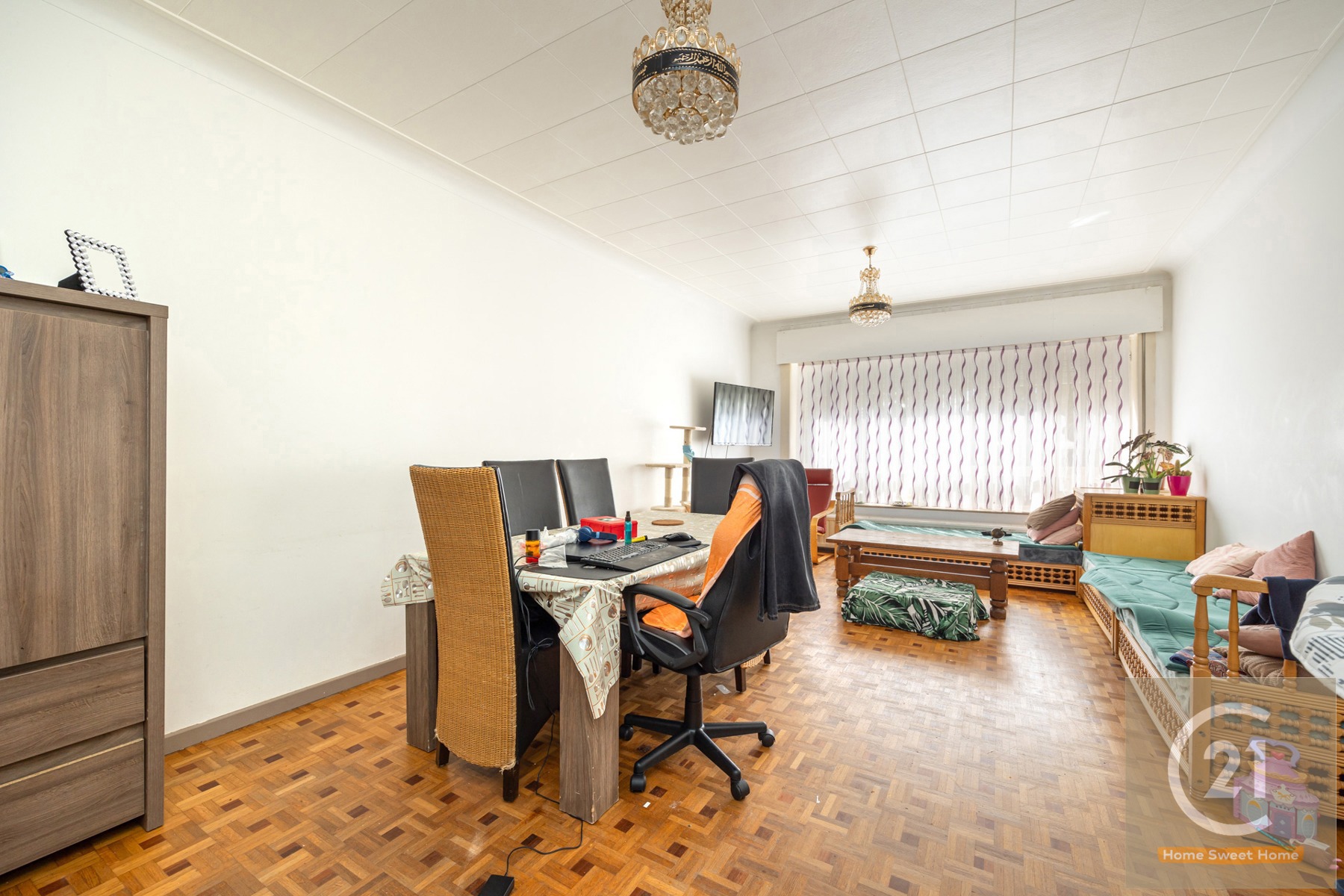 Bent u op zoek naar een gelijkvloers appartement met veel ruimte dat u volledig naar eigen smaak kunt opfrissen? Dit is uw kans! Met een woonoppervlakte van 110 m² biedt dit appartement alle mogelijkheden om uw droomwoning te creëren. Het beschikt over twee ruime slaapkamers, een groot terras aan de achterzijde waar u heerlijk kunt ontspannen, en een lichtrijke woonkamer met veel potentieel. De aparte keuken kan volledig naar wens worden ingericht, en er is een ruime kelder voor extra opbergruimte.