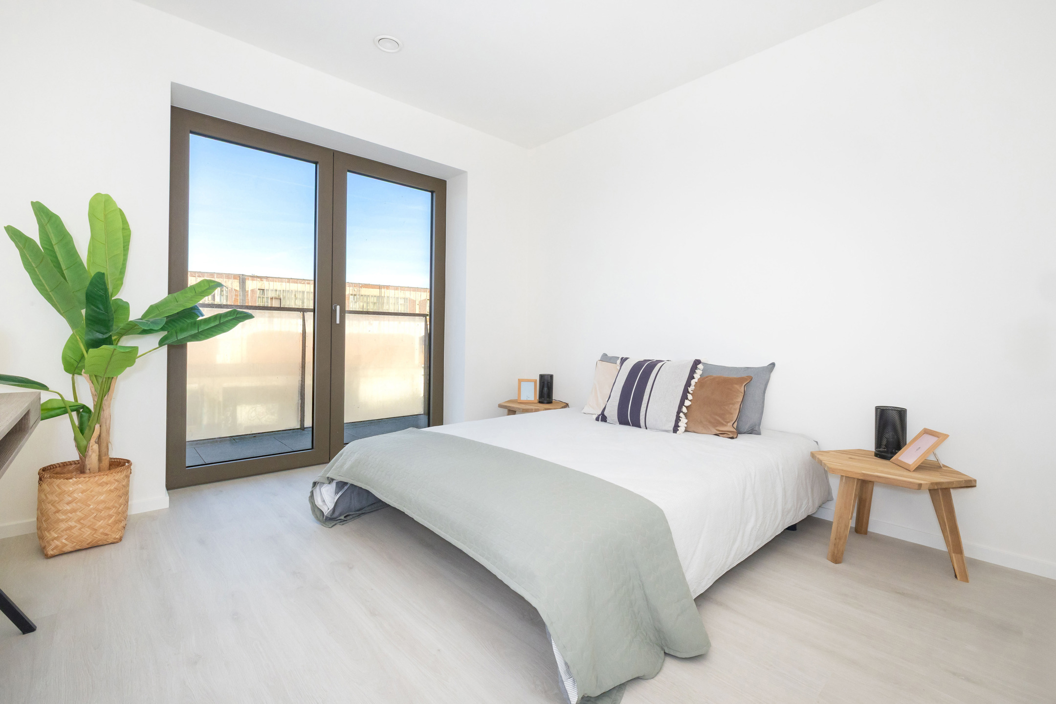De zonnige woonkamer met open keuken komt uit op een privéterras, dat een echte verlenging van de leefruimte vormt. De twee slaapkamers zijn goed geproportioneerd en kunnen flexibel worden ingericht. Ze worden aangevuld met een elegante badkamer en hoogwaardige voorzieningen.