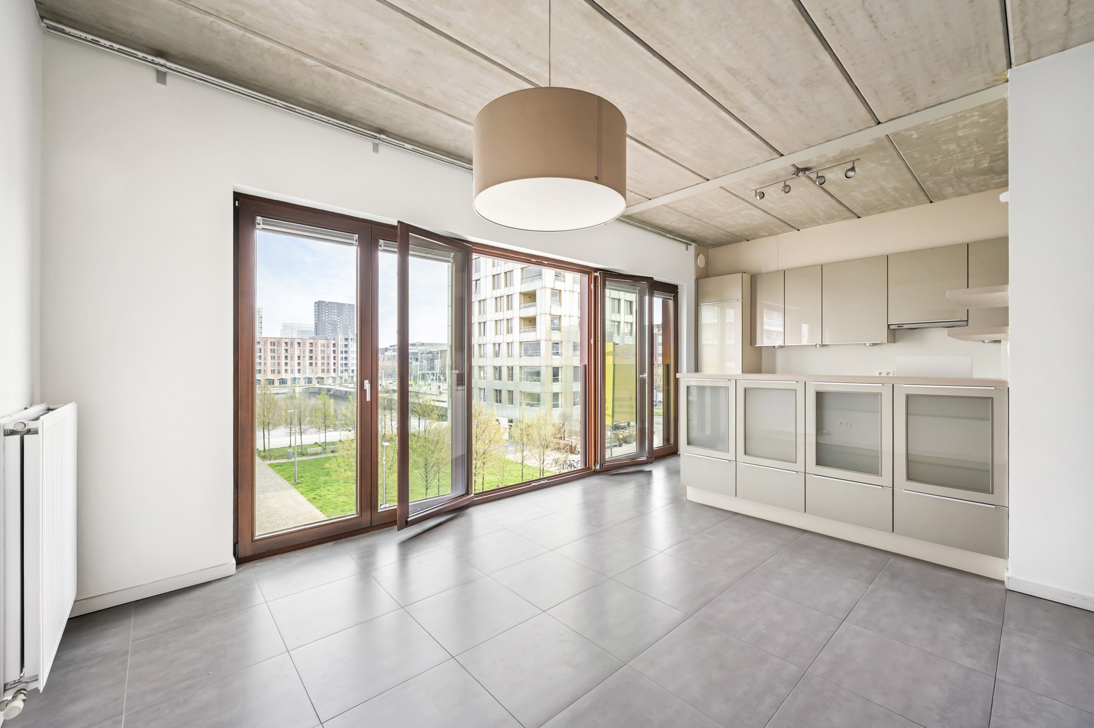 Het appartement is energetisch doordacht gebouwd en biedt een uiterst flexibel grondplan: alles kan perfect als één open, loftachtige ruimte worden ingericht. De volledig geïnstalleerde keuken sluit naadloos aan op de eetkamer en woonkamer, die samen genieten van een prachtig zicht op het water — een dagelijks gevoel van rust en ruimte.