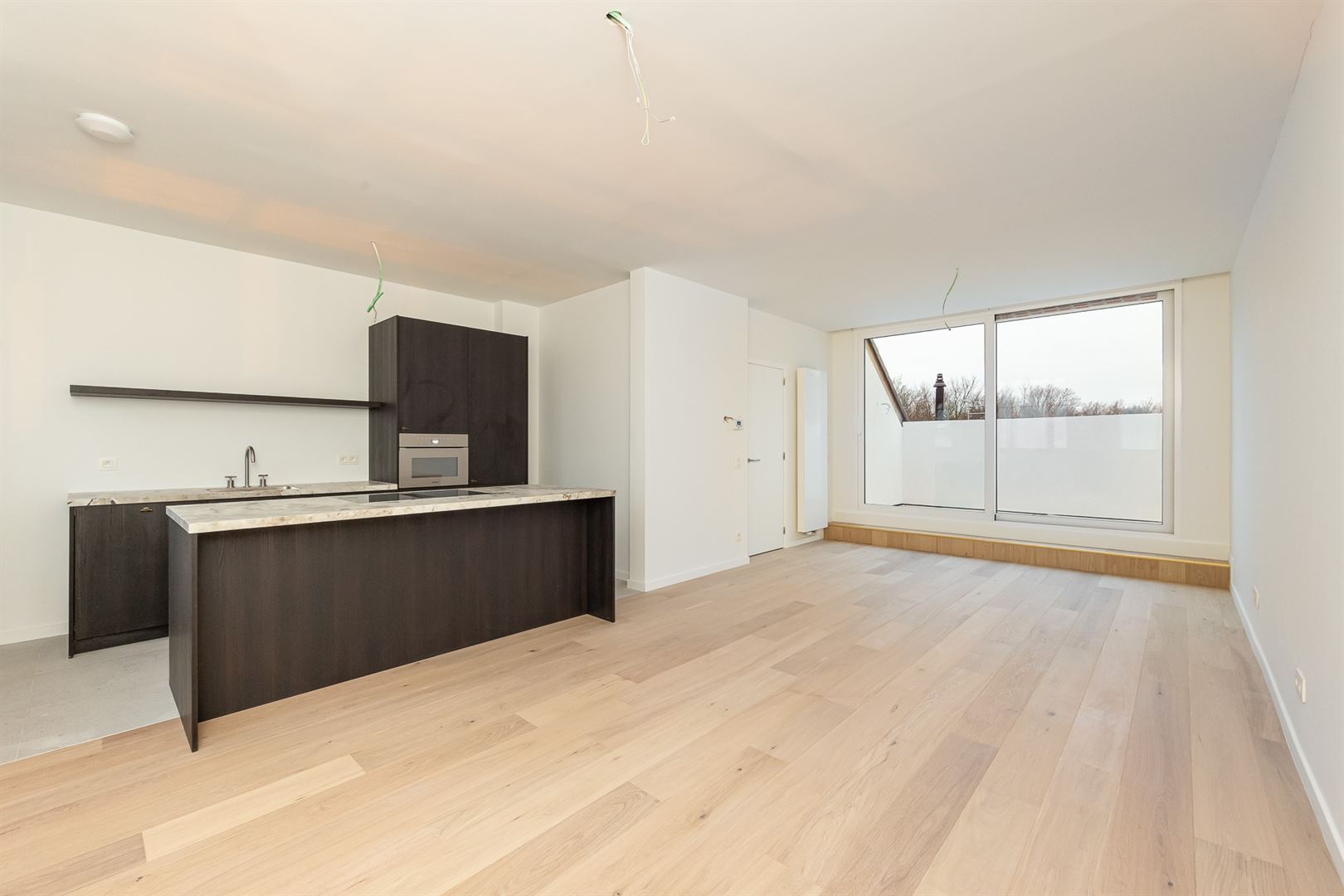 Op de derde en vierde verdieping van het gebouw vinden we het duplexappartement met 2 slaapkamers en terras. Een mooie leefruimte met toegang tot de open keuken en eetkamer. Een open keuken, voorzien van alle toestellen (Miele – Samsung) en eiland, met toegang naar het terras aan de achterzijde met zicht op groen. In de nachthal is er een gastentoilet en berging met aansluiting voor wastoestel en droogkast.