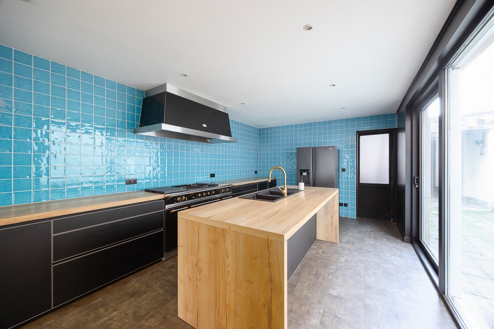 - Tussenverdiep: Vernieuwde badkamer met ruime inloopdouche, wastafel, ligbad en aparte wc.