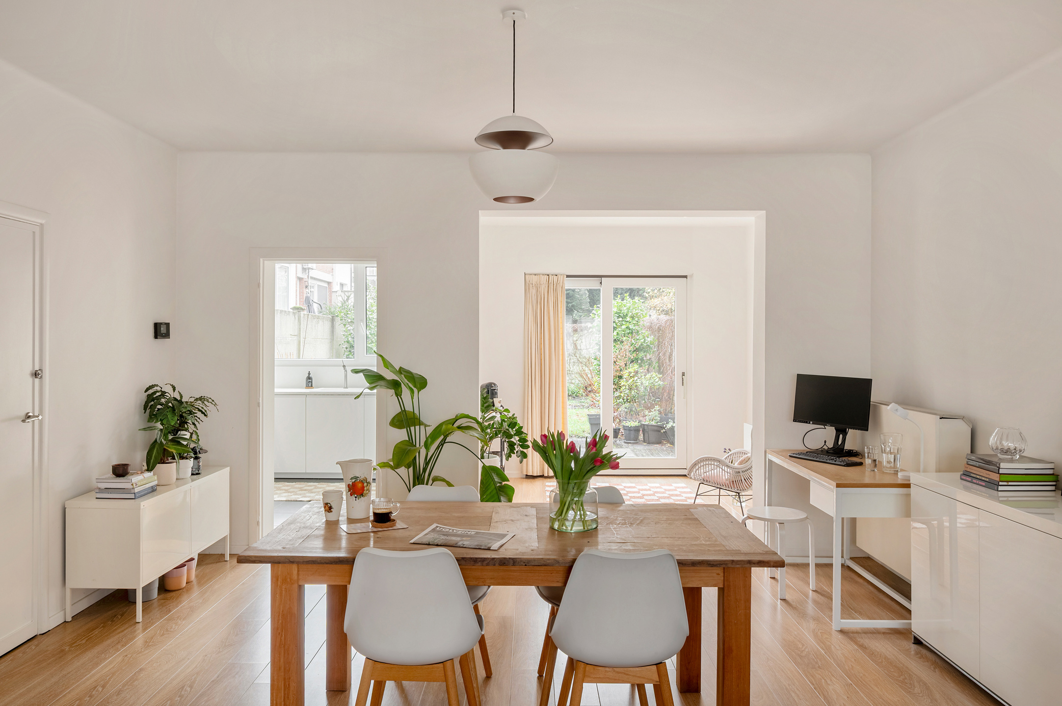 De leefruimte voelt warm en huiselijk aan, en vloeit naadloos over in de vernieuwde keuken en eetkamer. Dankzij het schuifraam haal je buiten moeiteloos naar binnen. Open het raam, zet de deur op een kier - en transformeer je tuin tot een verlengde van je woonruimte.