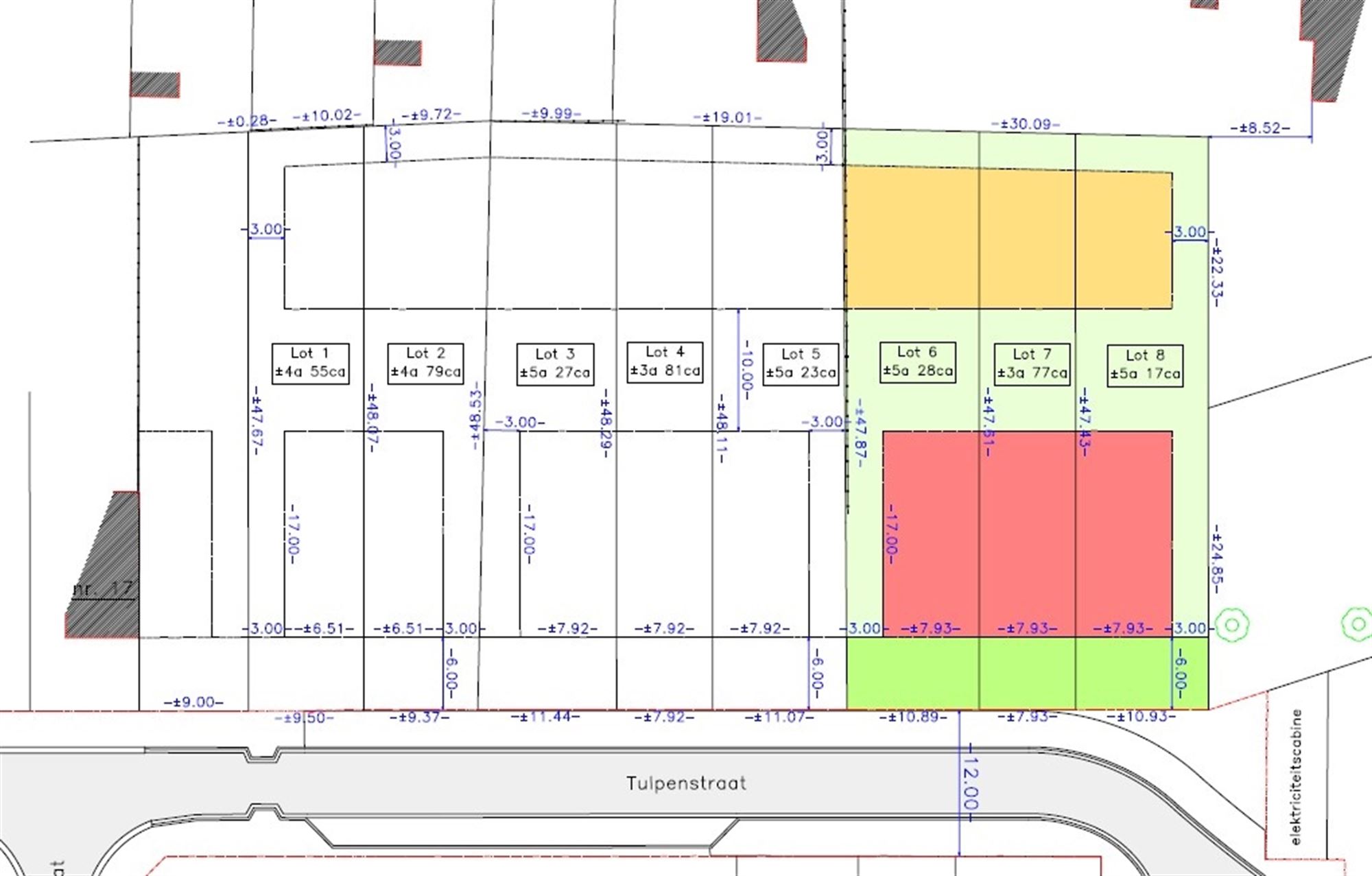 - Lot 8 (halfopen bebouwing, 517m²): 145.000 euro