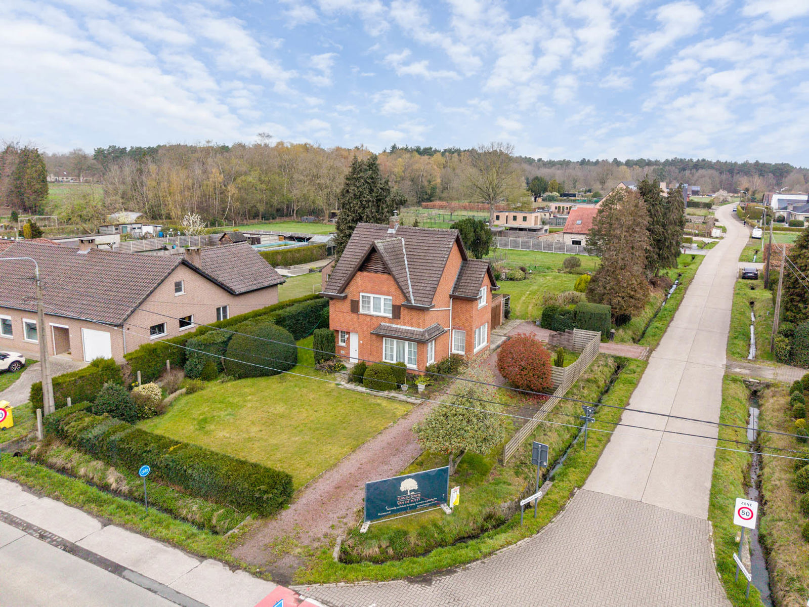 De tuin is ideaal qua oppervlakte en geniet een Noordelijke oriëntatie. Zowel vanaf de Hulshoutsesteenweg als vanuit de heiweg is het perceel toegankelijk.