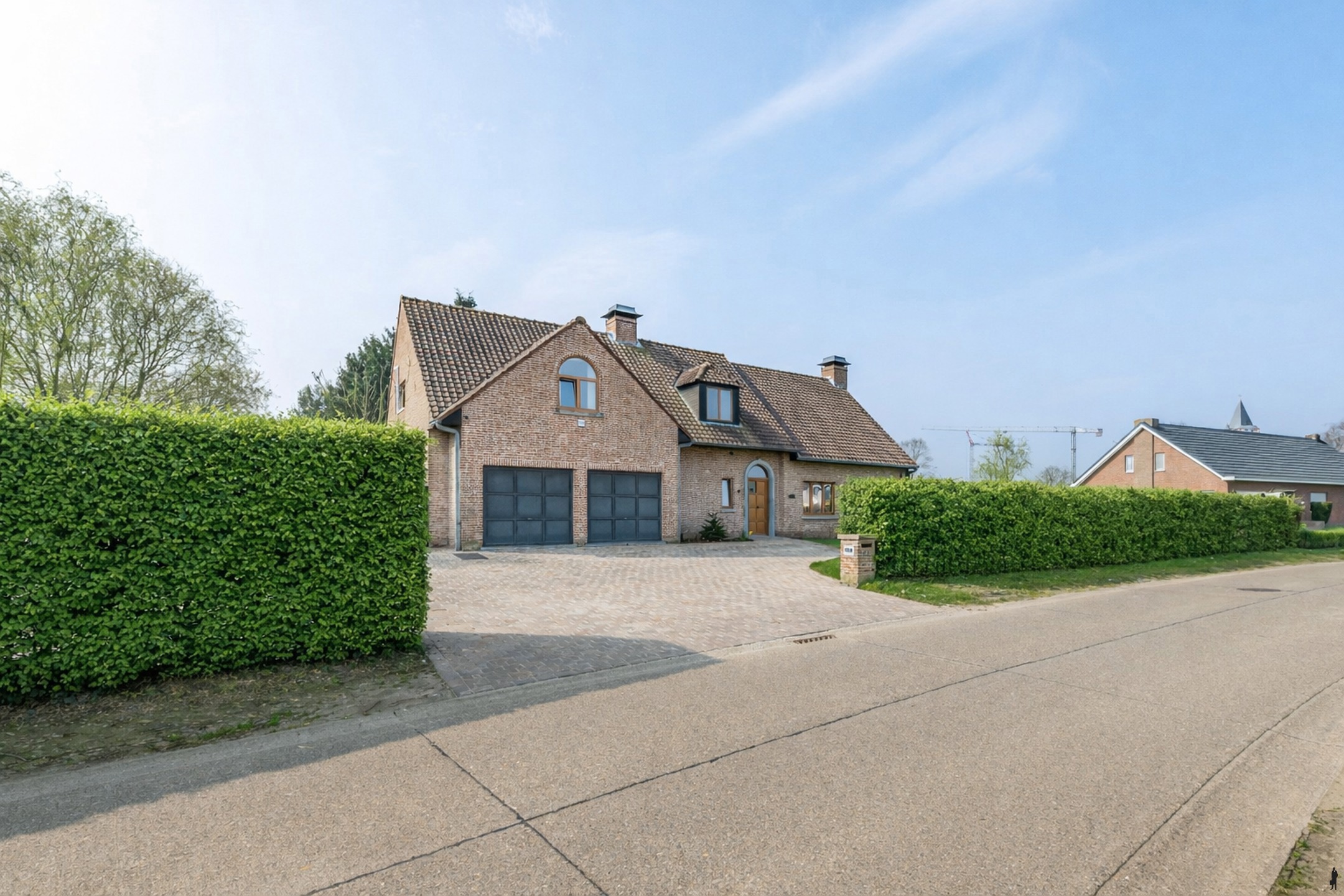 Een ruime inkomhal heet u een warme welkom, van hieruit toegang tot vestiaire en gastentoilet, woongedeelte en prachtige trap naar de verdieping. De lichte en ruime leefkamer vormt het hart van het huis en biedt een gezellige zithoek die uitnodigt tot ontspanning. Dankzij de grote raampartijen heeft u vanuit de woonkamer een panoramisch uitzicht op de prachtige tuin. De aangrenzende eetkamer is perfect voor diners met familie en vrienden en biedt eveneens een mooi zicht op het groen. De moderne woonkeuken is volledig uitgerust met een Amerikaanse koelkast, vaatwasser, en een luxe Falcon inductie fornuis met ovens. De dubbele spoeltafel en een werktablet met veel werkruimte. Van hieruit volop zicht op de tuin, zodat u altijd contact behoudt met uw gezin of gasten terwijl u kookt. Een charmante ontbijthoek maakt het plaatje compleet. Voor praktische zaken biedt de villa een ruime wasplaats met douche. De dubbele inpandige garage biedt voldoende ruimte voor twee voertuigen en extra opslag.
