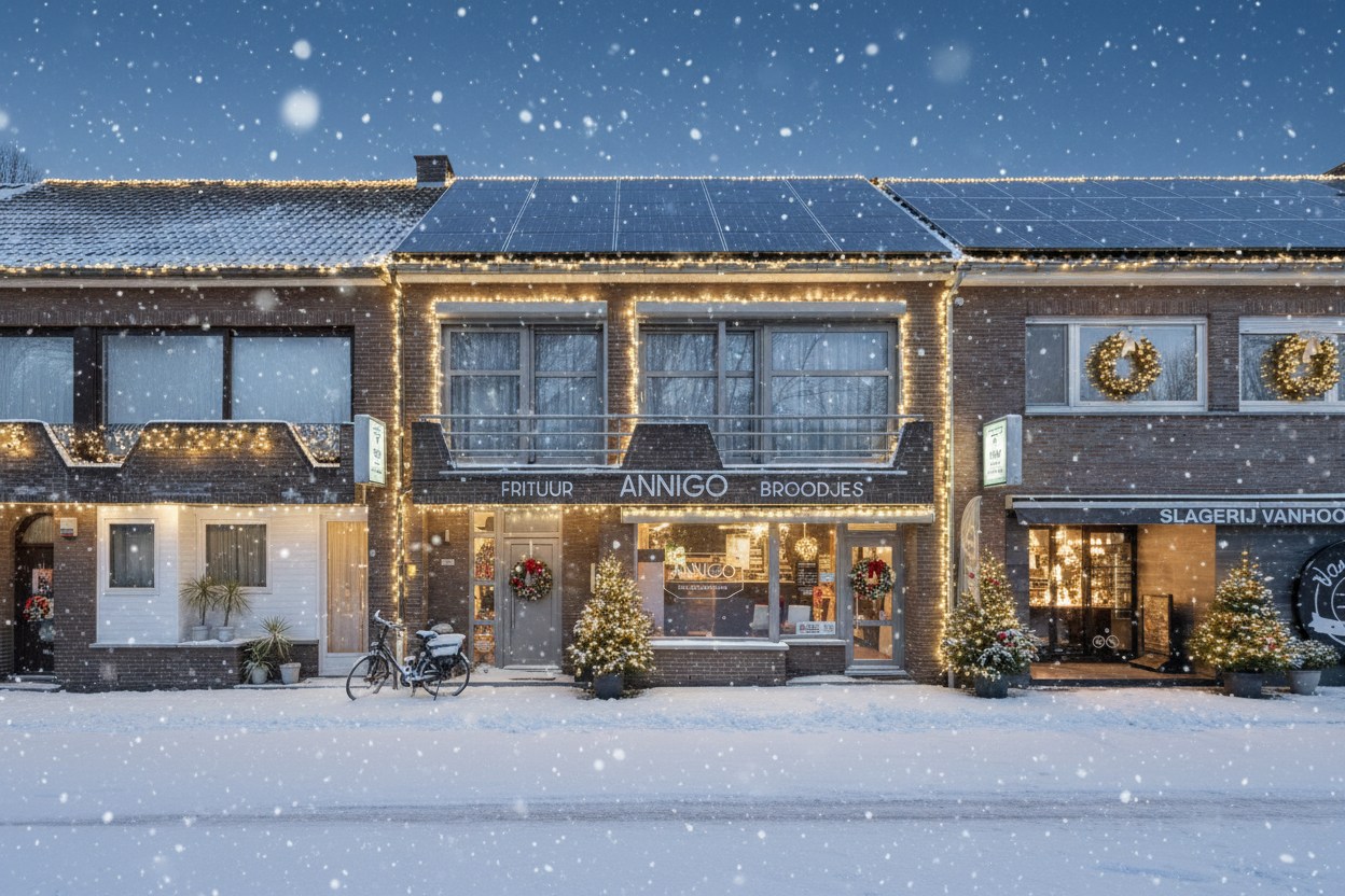 Via een afzonderlijke ingang aan de straatzijde heeft u toegang tot de handelsruimte. Deze is momenteel ingericht als frituur met verbruikszaal maar kan ook perfect voor andere beroepen ingericht worden. Achteraan de verbruikszaal is een afzonderlijk toilet voor cliënteel aanwezig. Aan de achterzijde van de handelsruimte is een afzonderlijke, volledig ingerichte keuken voorzien waar alle voorbereidingen voor de horeca-inrichting worden getroffen. Verder is er gelijkvloers nog een afzonderlijke badkamer met douche, toilet en wastafel, een koelcel en afzonderlijke bergruimte. Daarnaast nog een aparte garage met automatische poort, te bereiken via de achterzijde van het gebouw.
