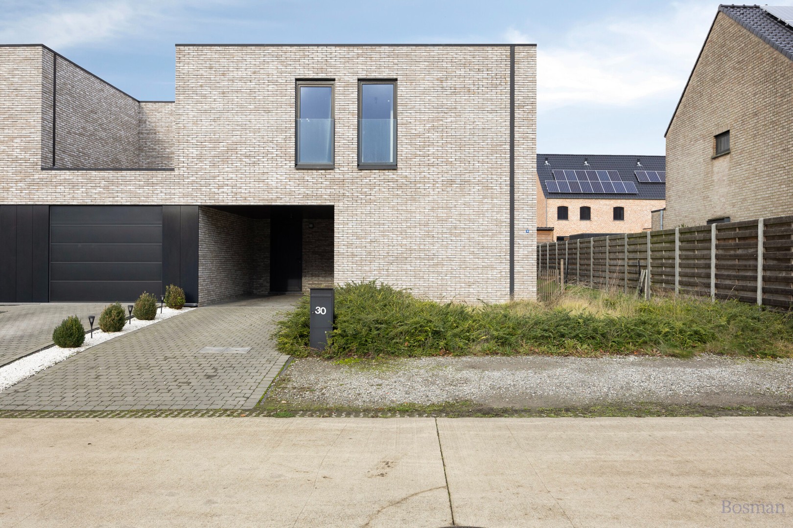 De woning, gebouwd in 2021, is praktisch ingedeeld en meteen bewoonbaar. Via de voordeur kom je binnen in de ruime, lichtrijke inkomhal (4,98m²) met gastentoilet (1,9m²) en ingemaakte kasten waarin de technieken zijn verwerkt. De woonkamer (28,75 m²) geniet door de grote raampartijen tot op de grond van veel natuurlijk licht. De open keuken (14,58 m²) sluit mooi aan op de leefruimte en is uitgerust met een koelkast, inductiekookplaat, vaatwasser, combi-oven en spoelbak. Zowel de keuken als de woonkamer hebben een fijne connectie met de tuin. Aansluitend aan de keuken bevindt zich een praktische wasberging (8,7 m²) met aansluitingen voor wasmachine en droogkast en extra opbergruimte. Daarnaast is er op het gelijkvloers nog een bijkomende berging.