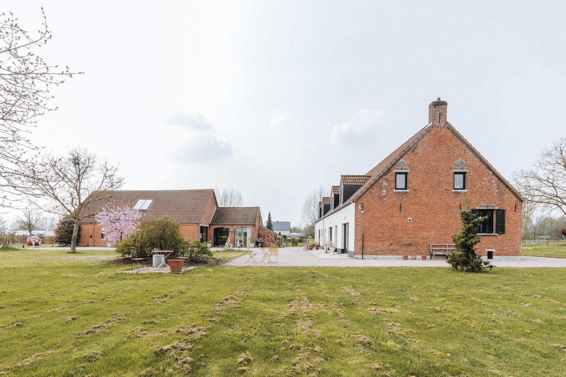 De voormalige hoeve werd de afgelopen jaren grondig gerenoveerd en uitgebreid met respect voor het authentieke karakter en hedendaags comfort. Authentieke materialen, zichtbare balken en grote raampartijen zorgen voor een lichtrijk geheel. De woning beschikt over meerdere leefruimtes, een leefkeuken, bureau, wijnkelder en op de verdieping onder meer 2 slaapkamers, badkamer, dressing en sauna. De hoofdslaapkamer is ingericht als aparte studio met eigen badkamer en uniek zicht over het weiland.