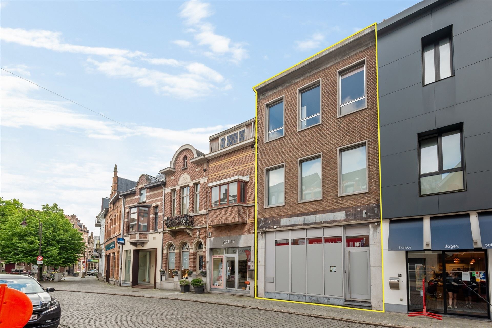 Dankzij de centrale ligging geniet het gebouw van een uitstekende zichtbaarheid en bereikbaarheid. Bovendien beschikt het pand over 6 à 7 parkeerplaatsen aan de achterzijde, een absolute meerwaarde in het centrum. De achteruitgang naar het Louis Selsplein zorgt voor bijkomend comfort en toegankelijkheid voor bewoners en klanten.