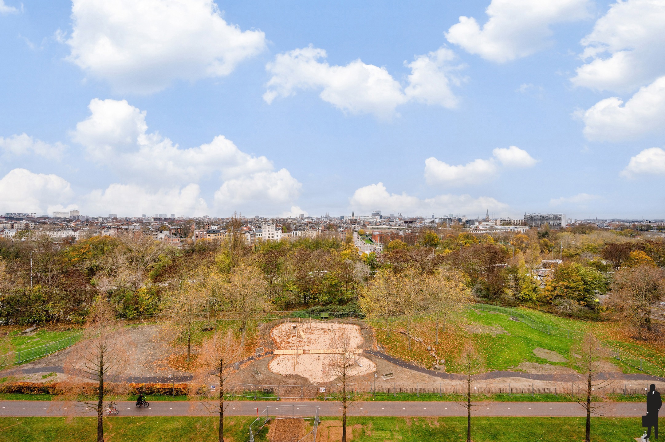 Dit ruime en lichtrijke appartement van 87 m² op de 9de verdieping onderscheidt zich meteen door het open, panoramische uitzicht over Antwerpen. In de leefruimte valt ’s avonds de zon binnen, waardoor het licht langzaam over de skyline schuift en een warme, ontspannen sfeer creëert. Aan de rustige achterzijde zorgen de slaapkamers dan weer voor een zachte start van de dag dankzij de ochtendzon.