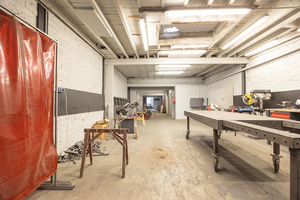 Via de inrijpoort (hoogte 2,22 m – breedte 3 m) kom je in het ruime magazijngedeelte van 249 m², met een minimale hoogte van 2,62 m en breedte van 6 m. De betonnen vloer maakt de ruimte stevig en onderhoudsvriendelijk, terwijl de verschillende lichtkoepels zorgen voor aangenaam daglicht. De elektrische boiler voorziet het pand van warm water – handig voor wie langere tijd in de ruimte werkt of even wil opfrissen.