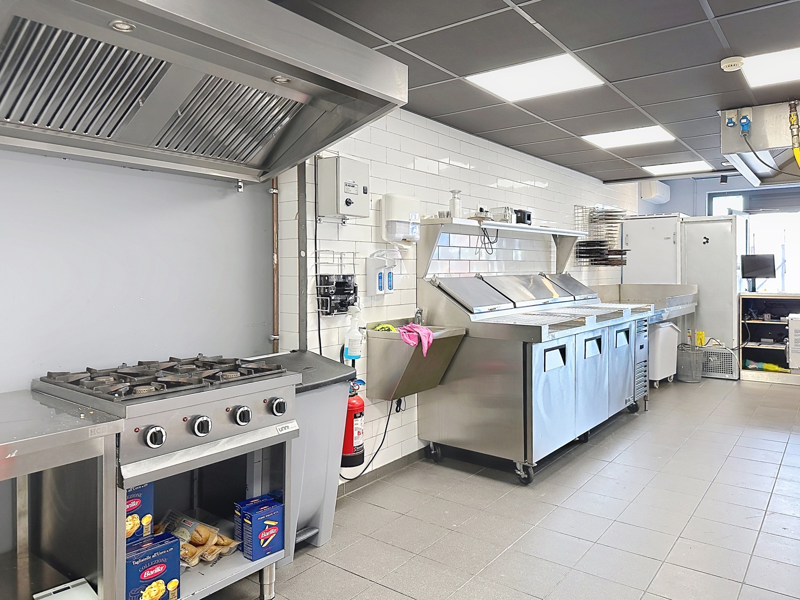 De handelsruimte bestaat ui een ontvangstruimte, sanitair gedeelte, bureel en een polyvalente ruimte.
