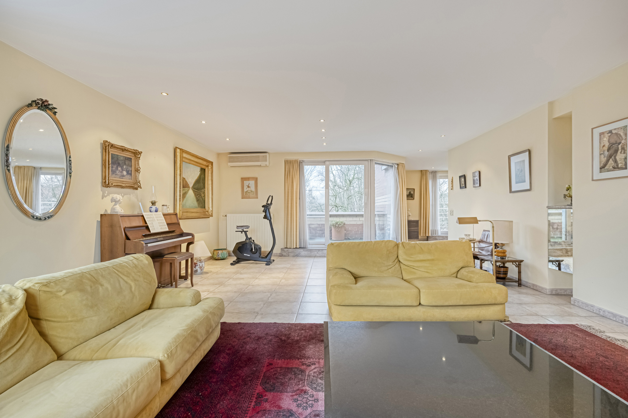 Via de inkomhal betreedt u deze ruime penthouse met een uitzonderlijk royale leefruimte. Grote raampartijen creëren een open gevoel en bieden directe toegang tot het eerste terras.