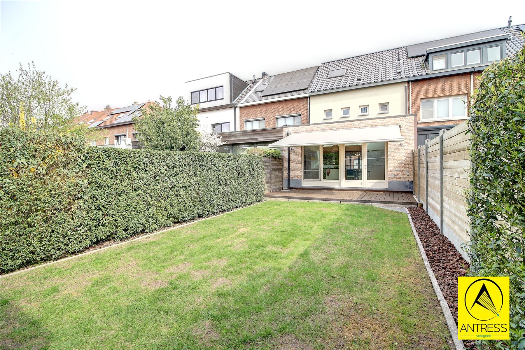 De tuin geniet de ideale Zuidwest oriëntatie, het terras beschikt over een elektrische zonne luifel en achteraan treffen we het handige tuinhuis. Voorzieningen water/ elektriciteit aanwezig.