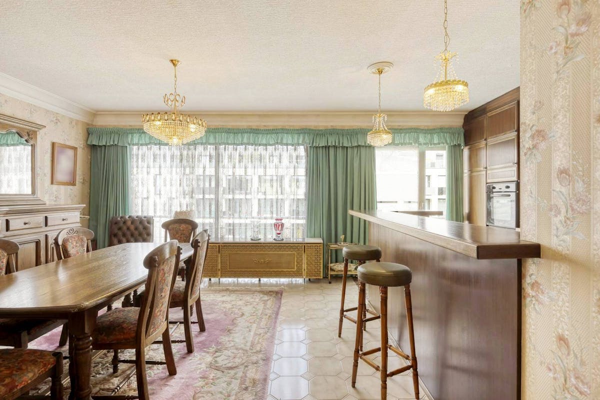 Indeling: Verdieping 5:- inkomhal voorzien van ingemaakte kasten- woon- en eetkamer- gedeeltelijk uitgeruste open keuken- aansluitende berging aan de keuken voorzien van aansluitingen voor de wasmachine- terras aan de voorzijde (4m²)- apart toilet met handenwasser- slaapkamer 1 (15,56m²)- slaapkamer 2 (9,53m²)- badkamer voorzien van een dubbele lavabo en bad (4,70m²)Extra's: - kelderberging- ondergrondse autostaanplaats verplicht aan te kopen aan €15.000- ruime gemeenschappelijke tuinBijzonderheden:- appartement van 95m² om volledig naar eigen smaak op te frissen- kleinschalig, netjes onderhouden gebouw met lift- lage gemeenschappelijke kosten- gunstige EPC-score- volledig asbestveilig- gelegen in handbereik van winkels, scholen, openbaar vervoer..Bent u geïnteresseerd in dit appartement te koop in Hoboken? Aarzel dan niet om contact met ons op te nemen via janice.racaj@dewaele.com of op 03 206 76 73.Wenst u uw eigendom ook te koop of te huur te stellen? We helpen u graag verder.Steeds tot uw dienst om u verder te helpen met al uw vragen over vastgoed!