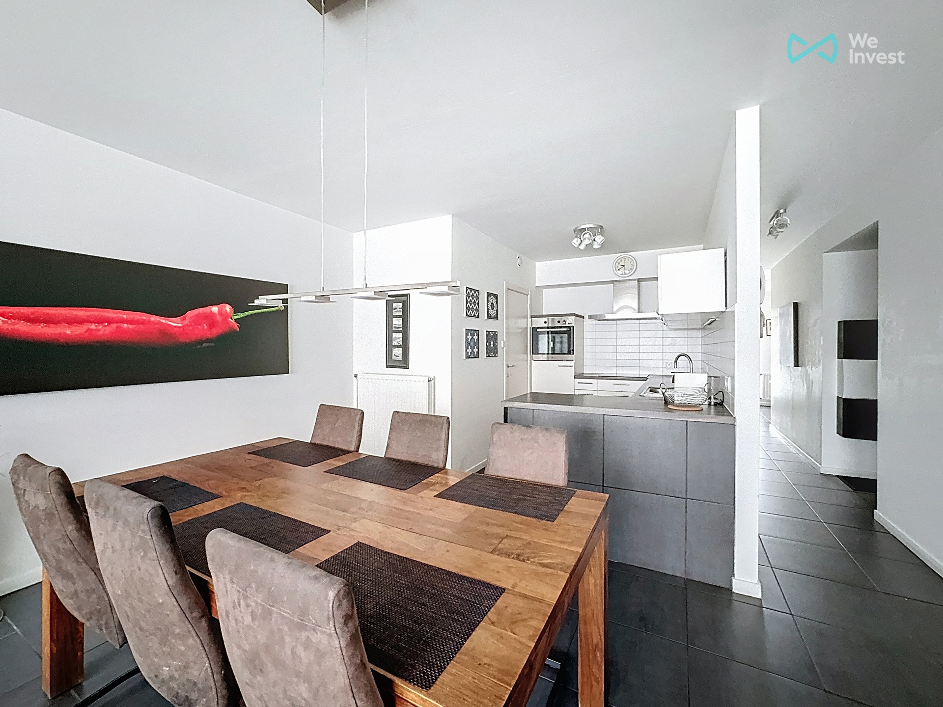 De open, volledig uitgeruste keuken vormt een mooie verbinding met de leefruimte en is voorzien van o.a. kookplaat, oven, vaatwasser, ingebouwde ijskast, ...
