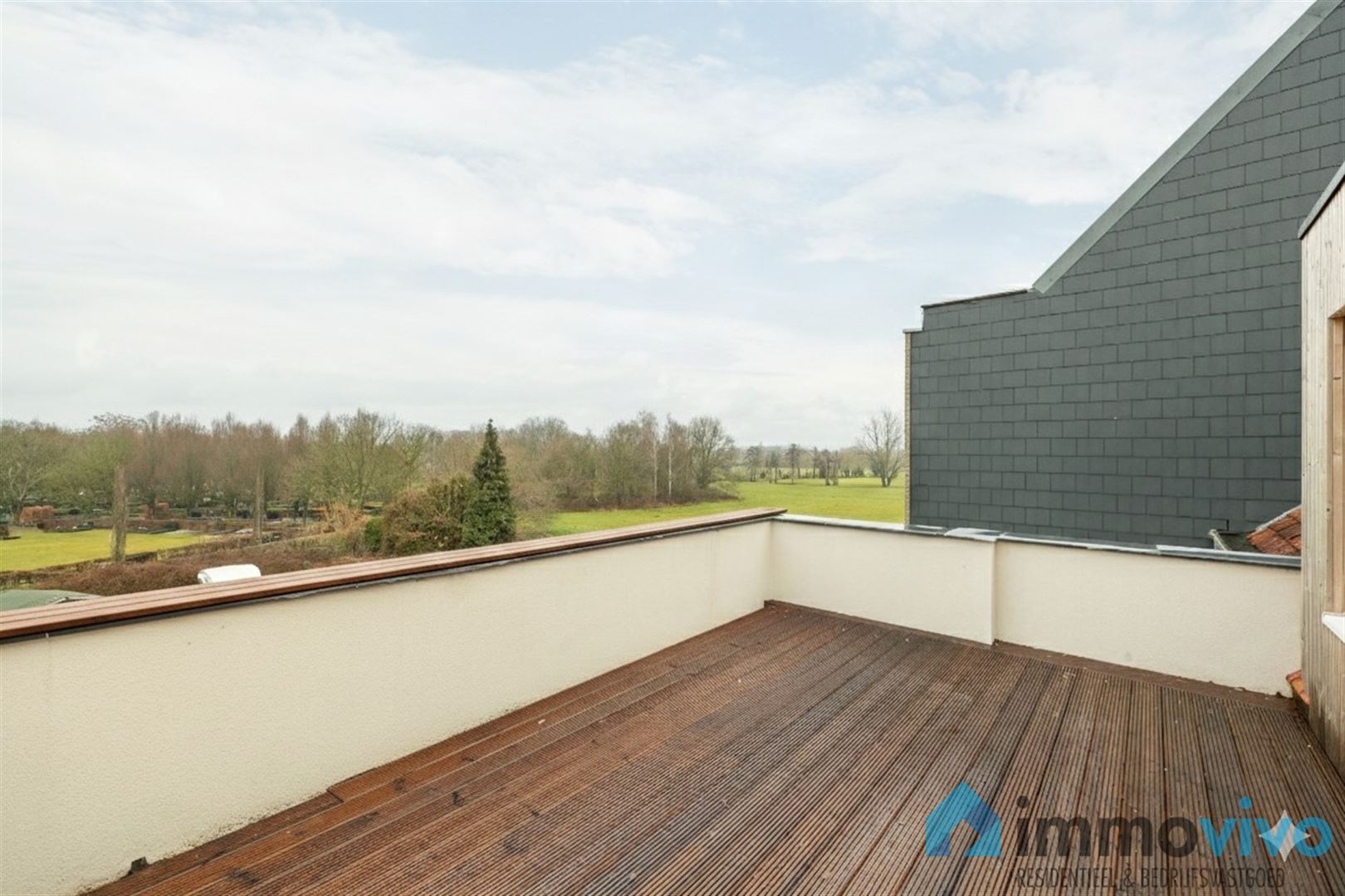 Het appartement is voorzien van een ruime living op laminaat met open keuken (enkel aansluitingen voorzien). Er is een volwaardige slaapkamer en een compacte badkamer met douche, lavabo en toilet. Er is een groot terras (21 m²) met prachtig groen vergezicht.