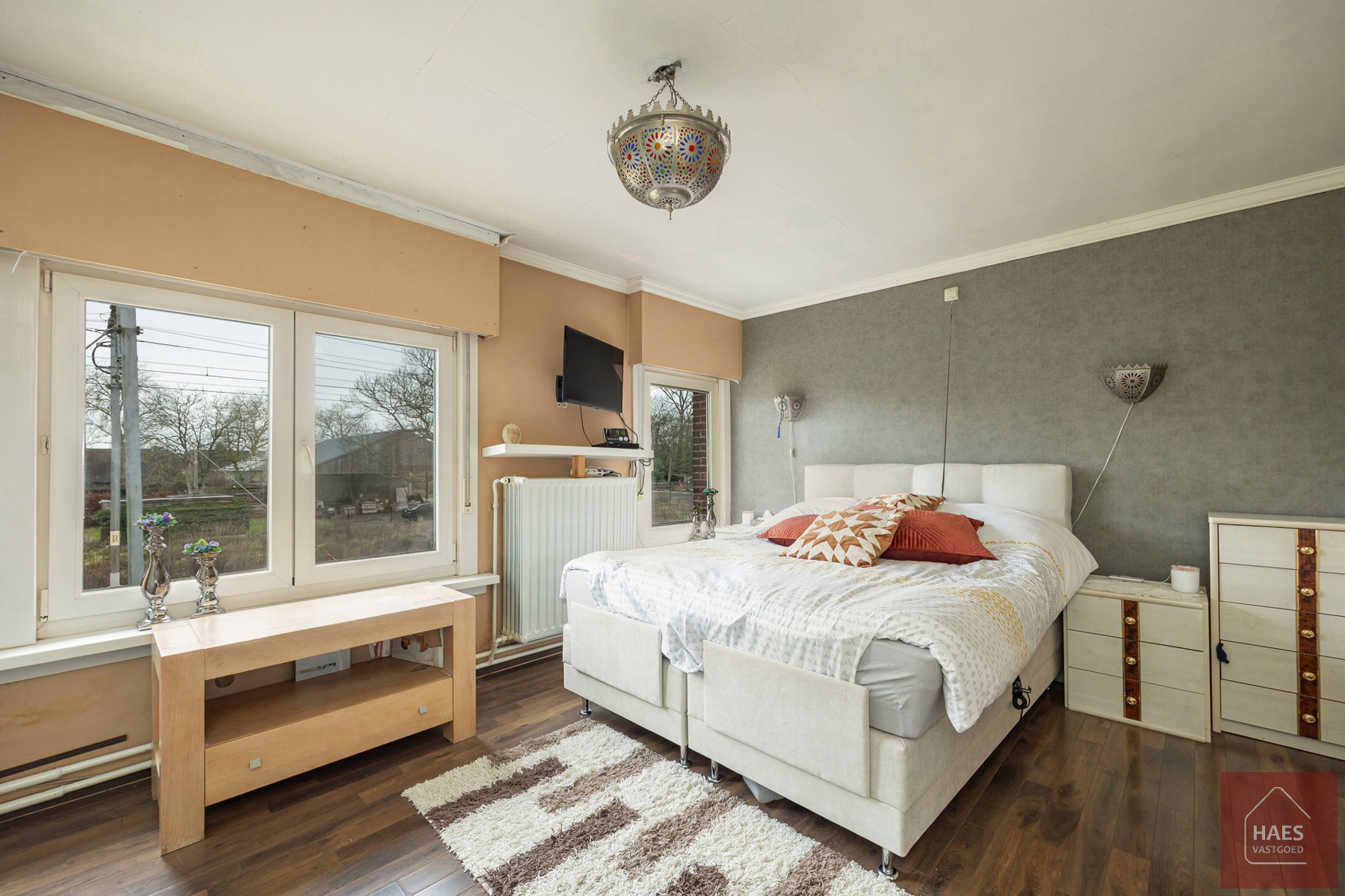 Op de bovenverdieping tref je twee ruime en lichtrijke slaapkamers, elk met een eigen stijl. De kamers bieden voldoende plaats voor een dubbel bed en extra kasten.
