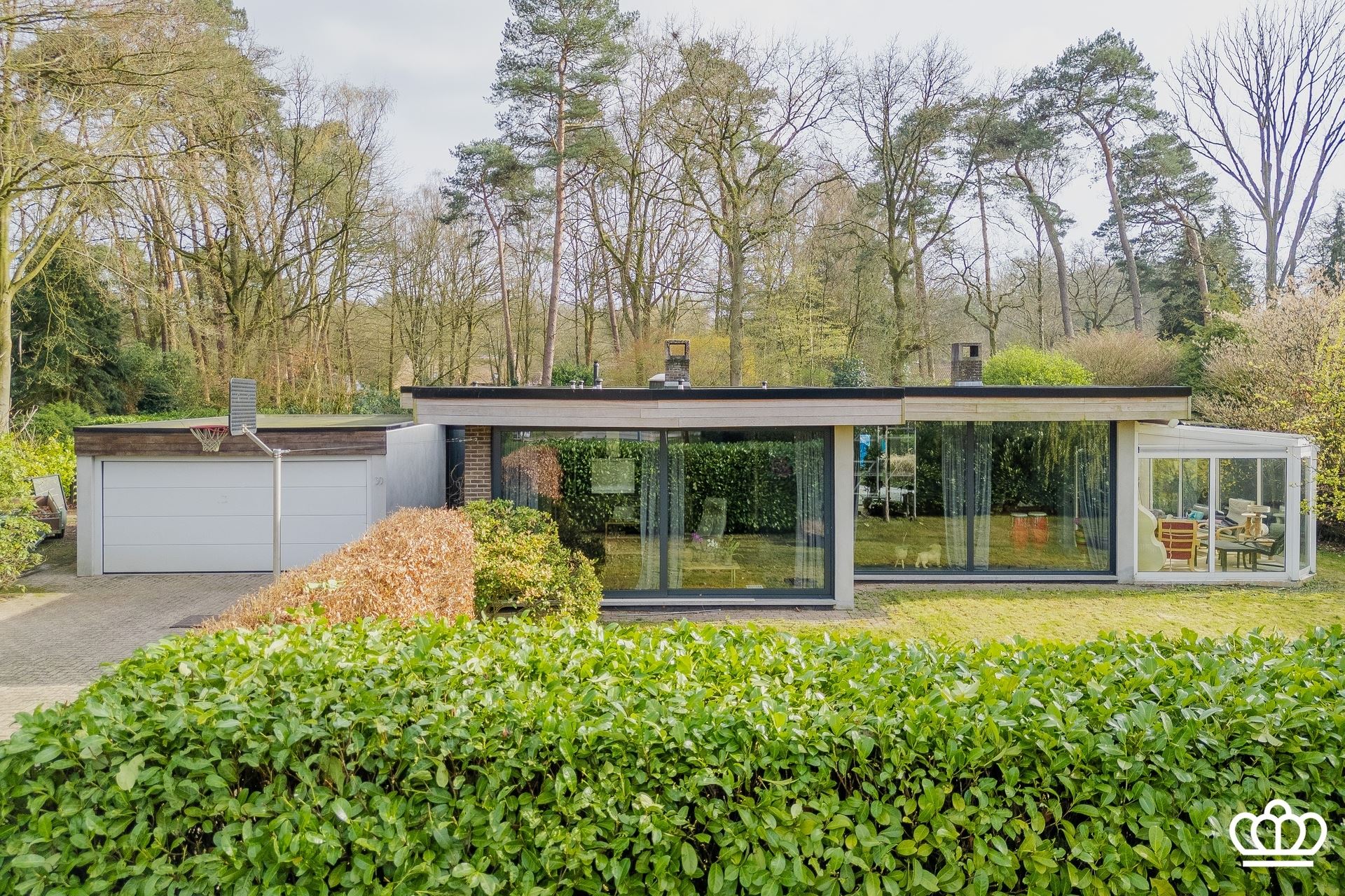 Residentieel gelegen modernistische laagbouwvilla met o.a. ruime leefruimte, ingerichte leefkeuken, 4 slaapkamers, 2 badkamers, bergruimte en een inpandige garage, op een zuidwestgericht perceel van 1.980 m².