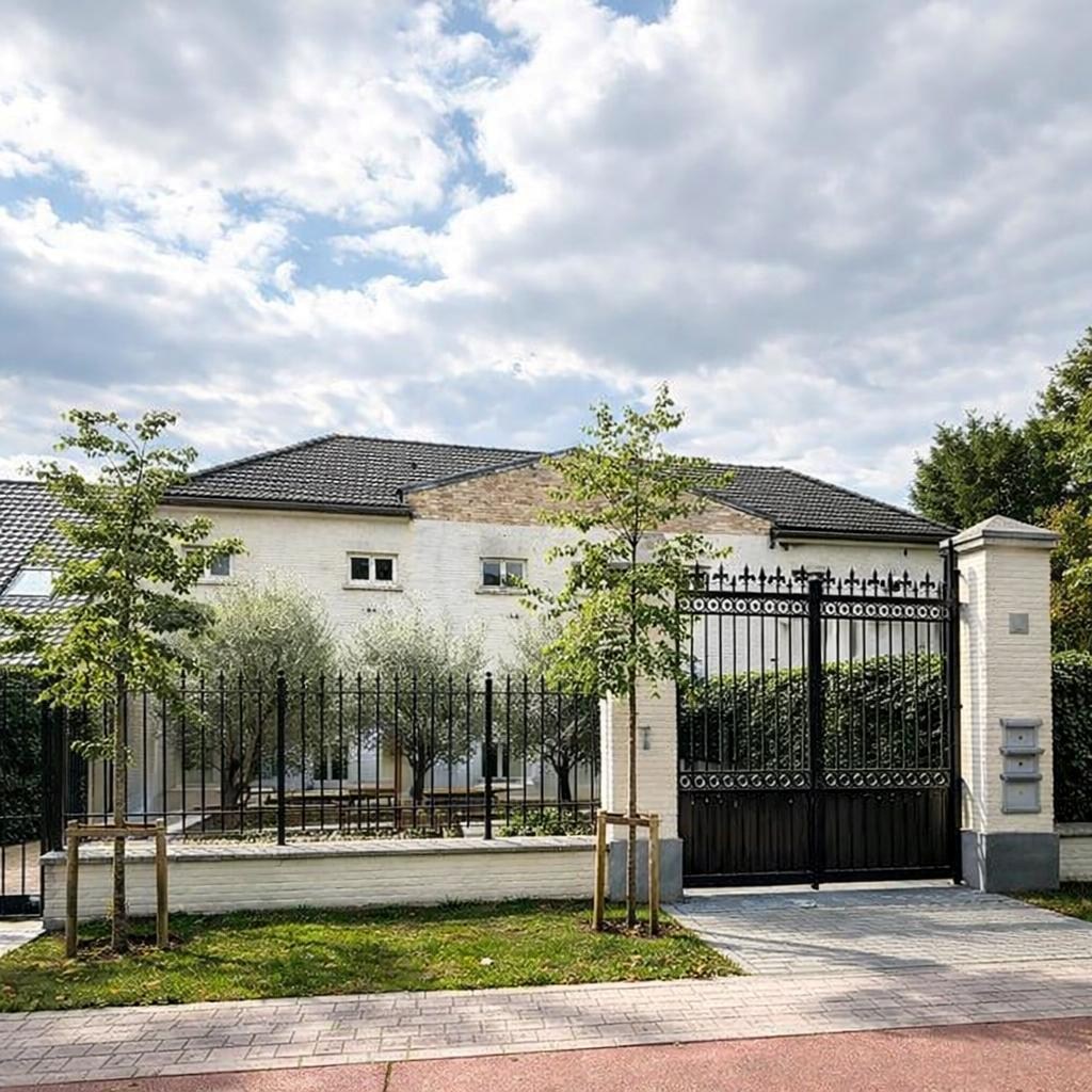 Bij binnenkomst via de smeedijzeren poort, wordt u verwelkomd door een fraai aangelegde voortuin en een indrukwekkend houten inkomportaal. Deze entree geeft al direct een warm en uitnodigend gevoel.