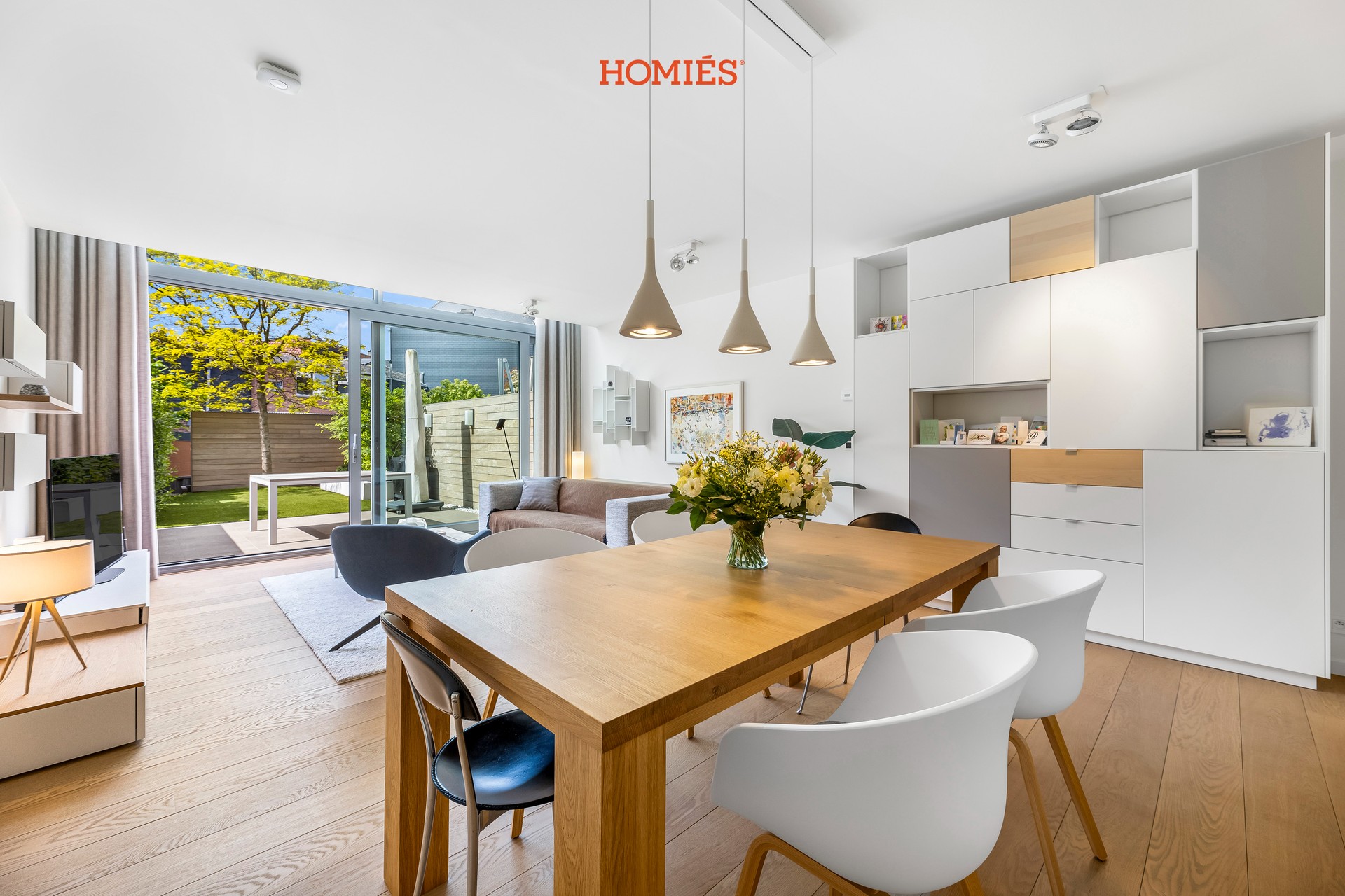 In een verborgen hoekje van het bruisende centrum van Leuven, aan een charmant en verkeersvrij pleintje, ontdekt u deze zeldzame parel: een energiezuinige stadswoning van topniveau, verscholen achter een discrete gevel. Wat volgt, is pure beleving: 170 m² wooncomfort met overvloedige lichtinval, een doordachte indeling en een afwerking tot in het kleinste detail geperfectioneerd. De leefruimte met vide en dubbelhoog raam creëert een indrukwekkend ruimtegevoel en vloeit naadloos over in de luxueus aangelegde tuin met tropisch hardhouten wanden, sfeervolle verlichting en royaal terras. De maatkeuken met granieten werkblad en ATAG-toestellen sluit hier elegant op aan. Boven vindt u drie ruime slaapkamers, twee luxueuze badkamers, een lichtrijke bureauruimte met zicht op de tuin, een praktische berging, twee nachthallen met plafondhoge kasten (14lm in totaal) en een overvloed aan functionele details: massief eiken parket, domotica (o.a. Niko Home Control 2.0), ventilatiesysteem, elektrische gordijnen, designverlichting, Cat6-netwerk, videodeurbel, veiligheidscamera’s, overal vliesbehang voorzien en professioneel geschilderd… Alles in perfecte staat, volledig instapklaar. Kelderberging en twee fietsenstallingen inbegrepen.