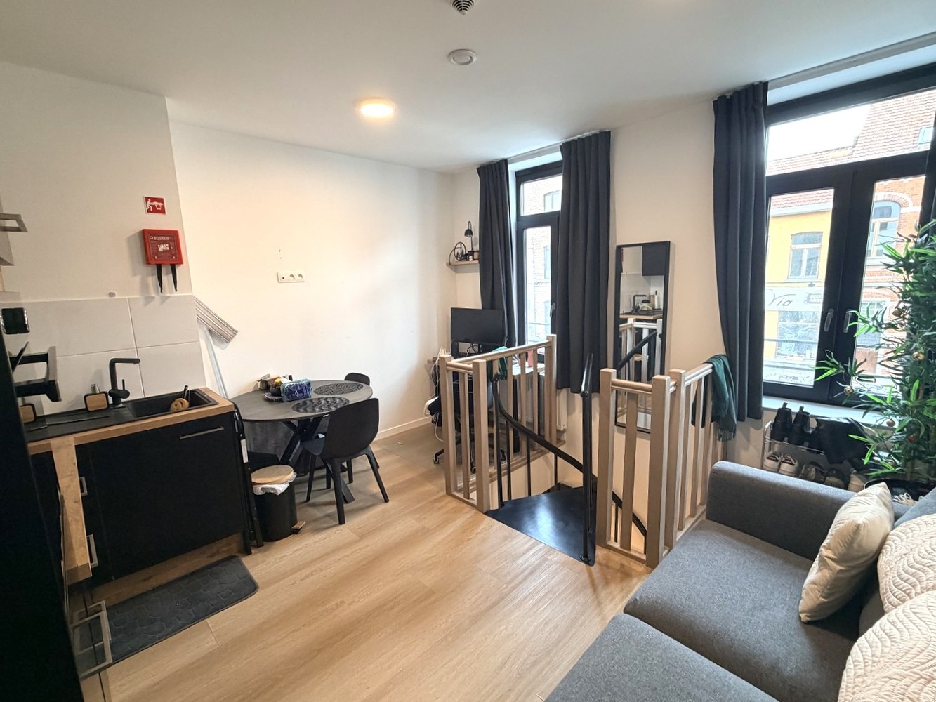 De studio is gelegen op de eerste verdieping en omvat een lichtrijke leefruimte met een volledig ingerichte keuken. Via een trap bereikt u de gezellige slaapkamer met ensuite badkamer, uitgerust met een douche, lavabomeubel en toilet.