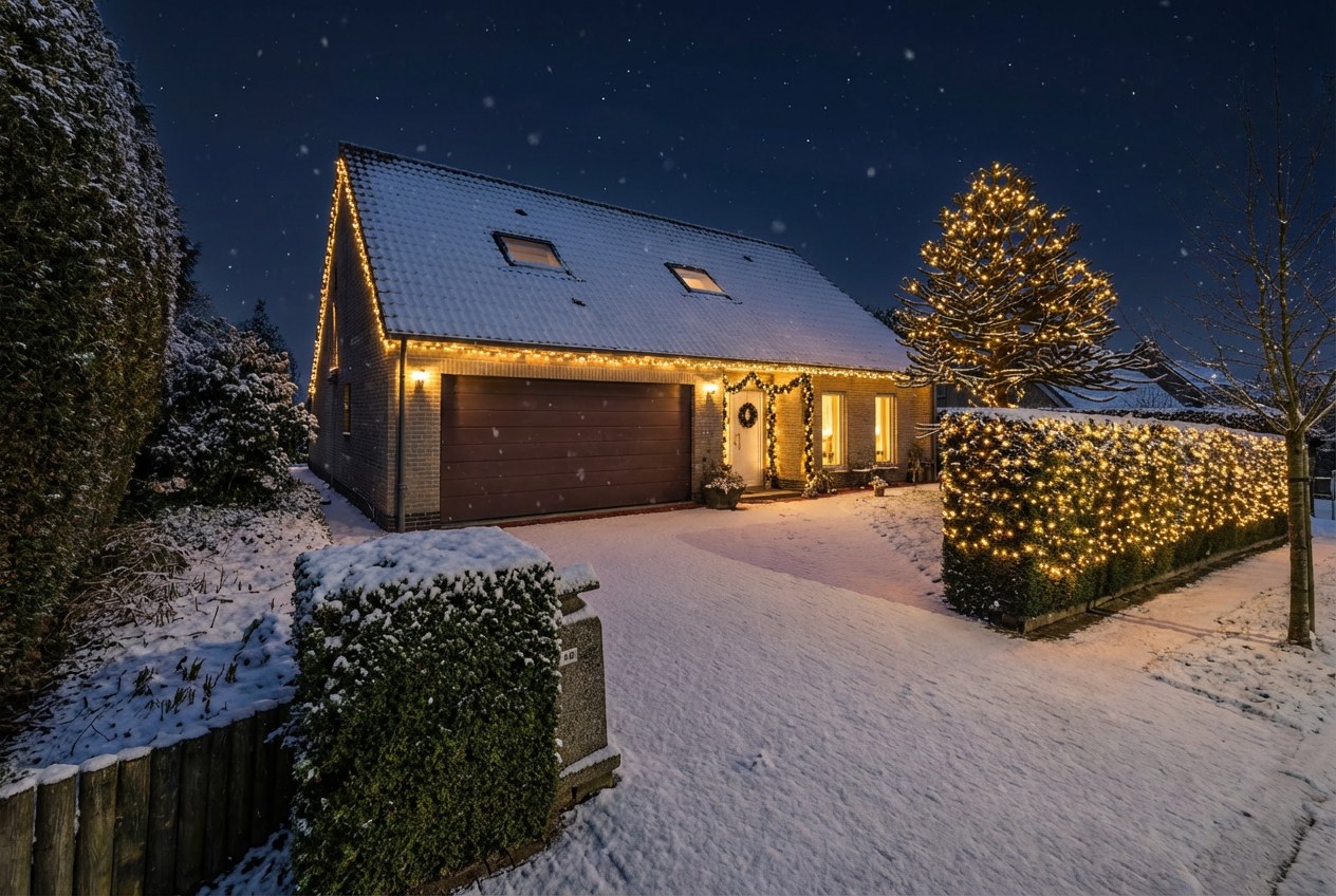 Op de begane grond vindt u een inkomhal, wc, woonkamer, keuken, berging, dubbele garage, terras en tuin. De eerste verdieping omvat drie slaapkamers, nachthal en een badkamer.