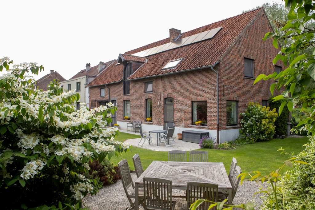 Hoewel officieel een halfopen bebouwing, voelt deze woning helemaal niet zo aan. Dankzij de brede gevel, open zichten en overvloedige lichtinval voelt dit als een vrijstaand huis. De zeer grote en lichtrijke leefruimte vormt het hart van de woning, een plek zo sfeervol dat ze dienst deed als hoofdlocatie voor de populaire VRT-reeks Dertigers.
