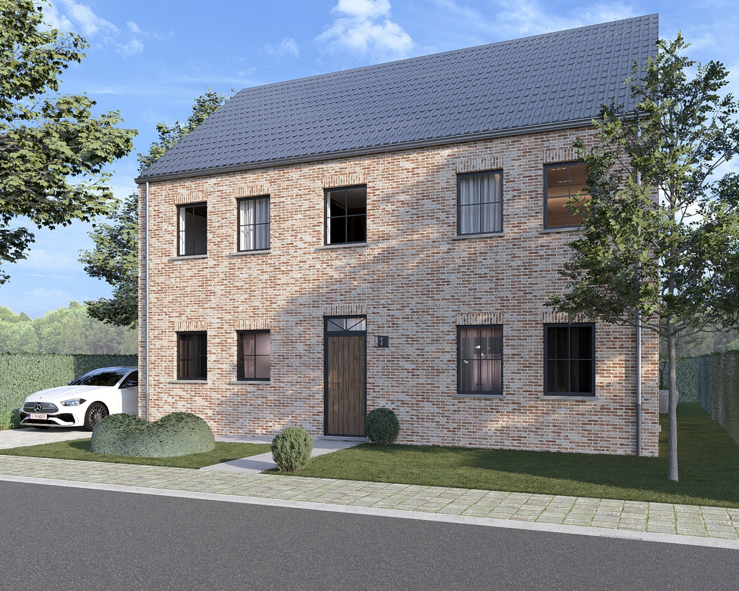 Deze voorbeeldwoning met drie slaapkamers combineert hedendaags wooncomfort met duurzame technieken zoals een warmtepomp en zonnepanelen. De zolderverdieping is momenteel nog niet afgewerkt en biedt bijkomende mogelijkheden om extra ruimtes te creëren of de woning verder te personaliseren.