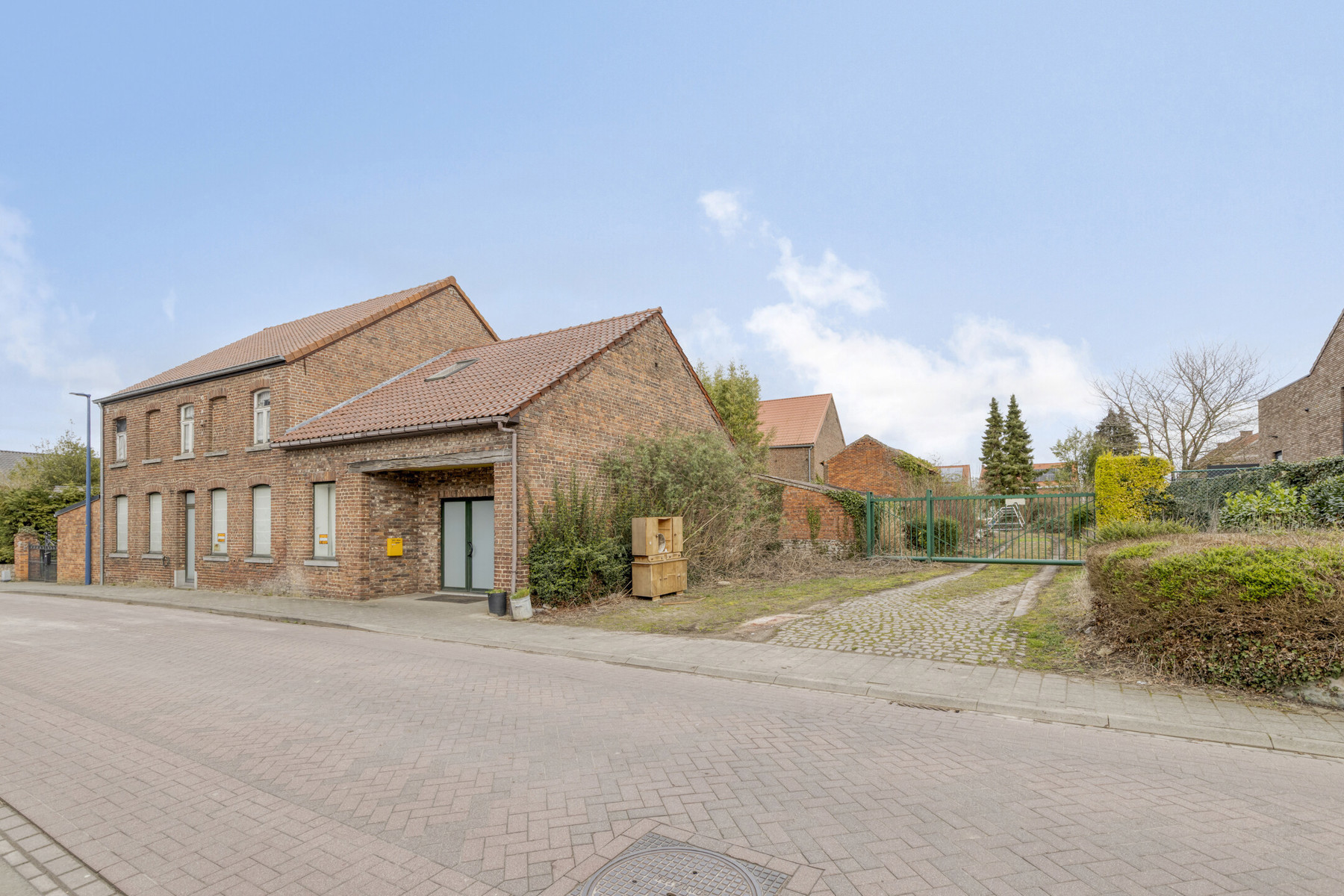 Aan de rechterkant is er een ruime doorgang naar de achterkant van het perceel.