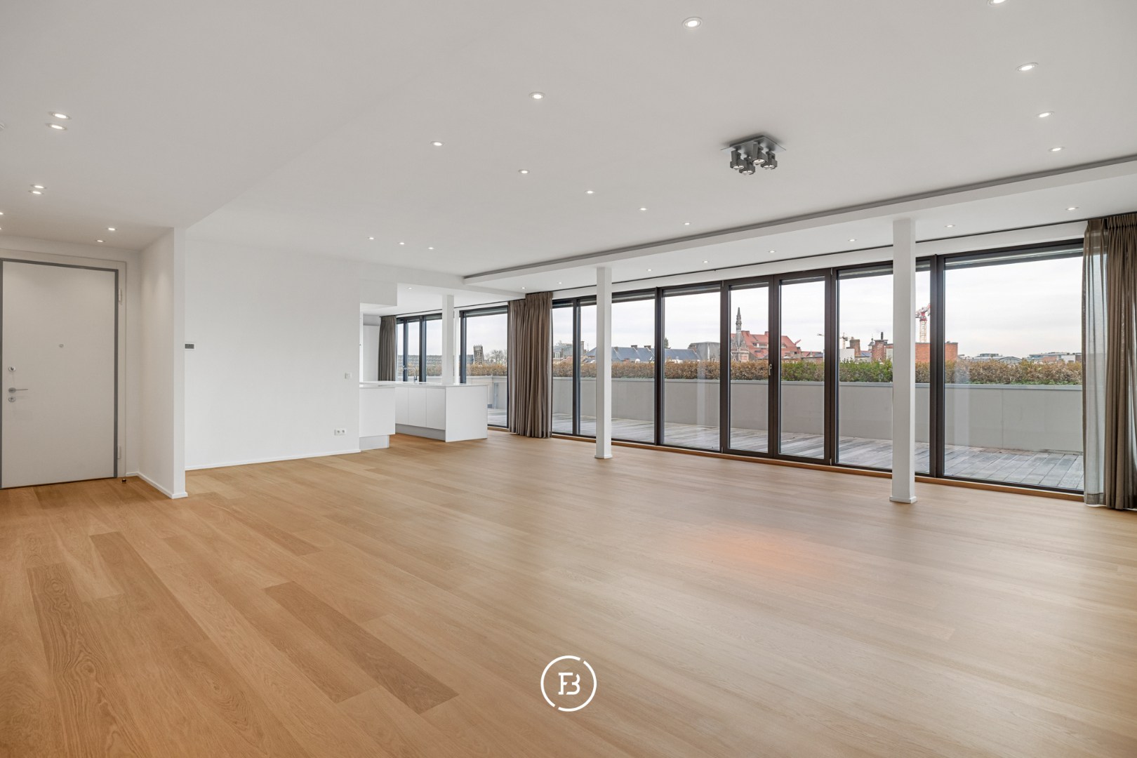Dit uitzonderlijk ruime appartement van ca. 220 m² biedt een zeldzame combinatie van volume, licht en rust, midden in de stad. De architectuur is open en doordacht, met brede raampartijen die zorgen voor een natuurlijke lichtinval en een aangename flow doorheen de woning.