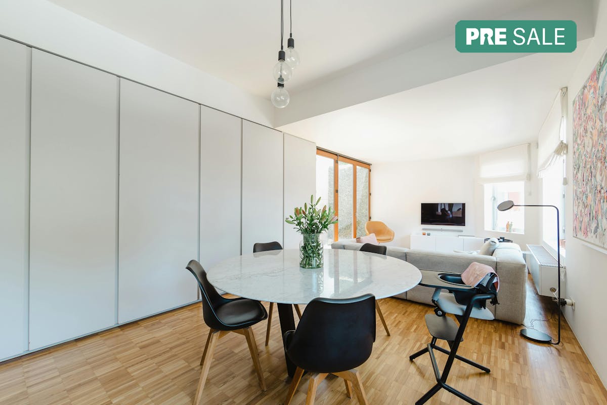 Betreed dit duplex penthouse (151m²) via de privé-inkom op de 1e verdieping. De volledige 2e verdieping is open ingericht: woonkamer met stijlvolle harmonicadeur naar patio (zo worden binnen en buiten één), ingerichte keuken, koele berging, open bureauruimte, vestiaire, toilet, slaapkamer en badkamer met ligbad en dubbele lavabo. Het toilet is apart. Op de 3e verdieping word je verrast door een fijne bar grenzend aan een fenomenaal dakterras (deels overdekt), je eigen rooftop bar! De tweede slaapkamer heeft een eigen smaakvol afgewerkte badkamer met riante inloopdouche , lavabo en apart toilet. In 2019 werd dit verdiep volledig nieuw gerealiseerd met oog voor detail.EXTRA TROEVEN+ gerenoveerd en volledig nieuw verdiep (+3) in 2019+ veel lichtinval dankzij grote raam partijen+ dakterras met zon gedurende de hele dag en schaduw dankzij het overdekt gedeelte+ 2 ruime kelderbergings + fietsenstalling+ pure luxe dankzij warme parketvloeren, Vola kraanwerk, wijnkoeler, schuifdeuren, maatkasten, indirect licht, verfijnde details en natuursteen.+ luxe, licht en design staan hier centraal! Relevante documenten: www.dewaele.comDe eigendom wordt aangeboden via de Pre-sale formule. Op 04/03/2026 tussen 15:00 en 18:00 kan u de woning op afspraak komen bezichtigen en een bod uitbrengen. De vermelde prijs is een instelprijs. Voor meer info, gelieve contact op te nemen met de dossierverantwoordelijke.