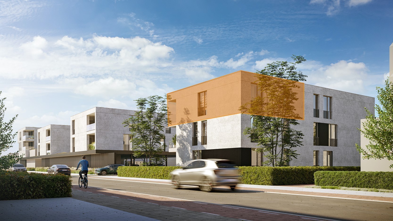 Appartement D2.3 heeft een bewoonbare oppervlakte van 99,26m² en bevindt zich op de tweede verdieping van één van de bijzonder hedendaagse en architecturale gebouwen in woonerf Corcela te Koersel.