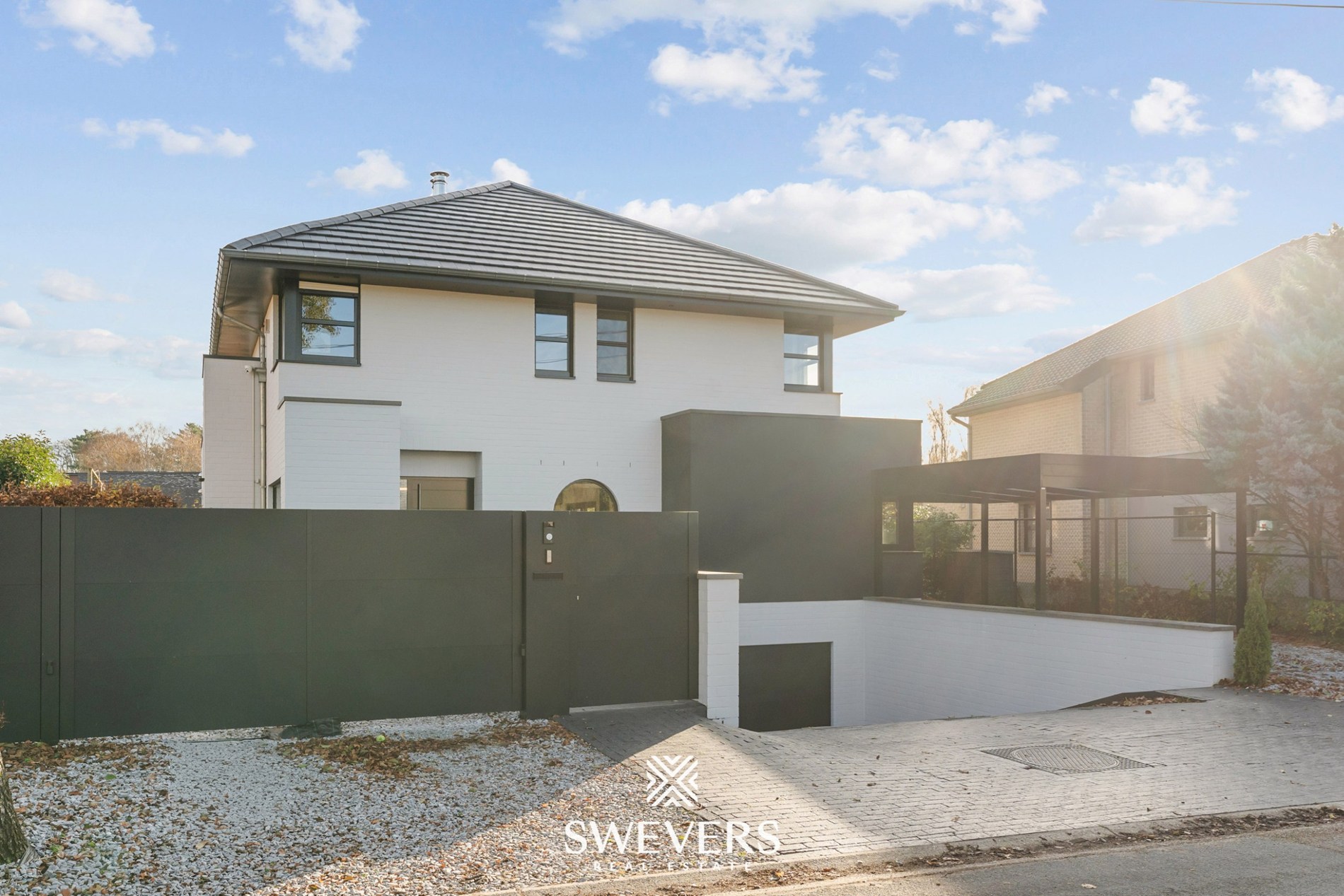 De woning biedt bovendien uitgebreid praktisch gemak: een ondergrondse garage voor twee wagens, een carport uit 2024, volledige kelderruimte van 45,93 m² en drie slaapkamers, waaronder een master met eigen badkamer en dressing. Een tweede badkamer werd in 2023 vernieuwd en de zolder biedt extra opslag of potentieel voor uitbreiding. Ook de buitengevels kregen in 2022 een opfrisbeurt.