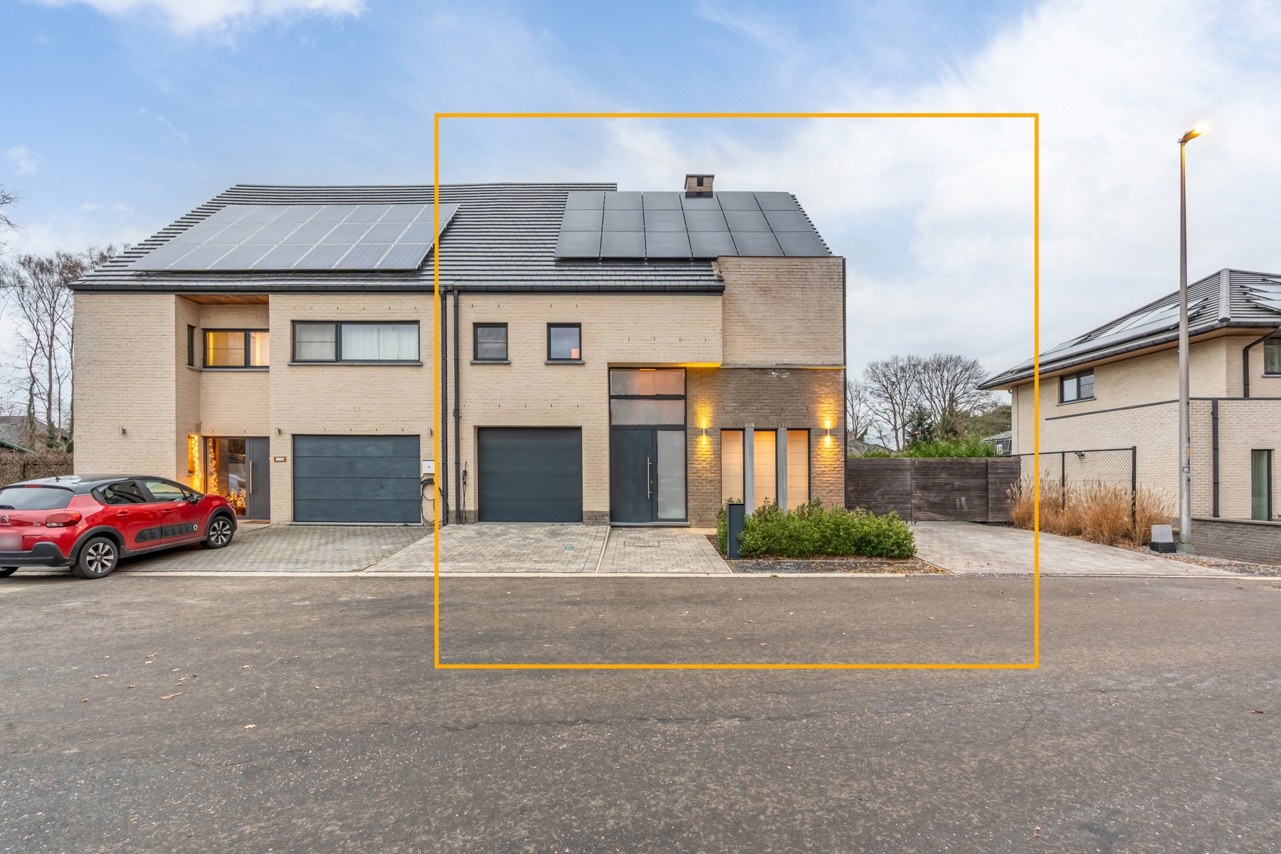 Deze halfopen gezinswoning werd vervolledigd in 2013, werd met duurzame en stijlvolle materialen ingericht en voorzien van alle comfort. Recentelijk werden nog waardevolle toevoegingen gedaan zoals het installeren van een laadpaal, het plaatsen van 7.650 wp zonnepanelen (die van de ideale oriëntatie profiteren) en het installeren van een ingebouwde gashaard met maatwerk.