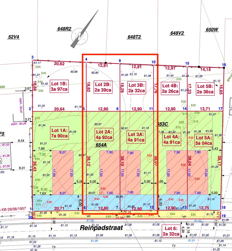 Genk, Reinpadstraat 183 (Lot 2: 7a 31ca) en 185 (Lot 3: 7a 23ca): uitstekend gelegen bouwgronden voor halfopen bebouwing.